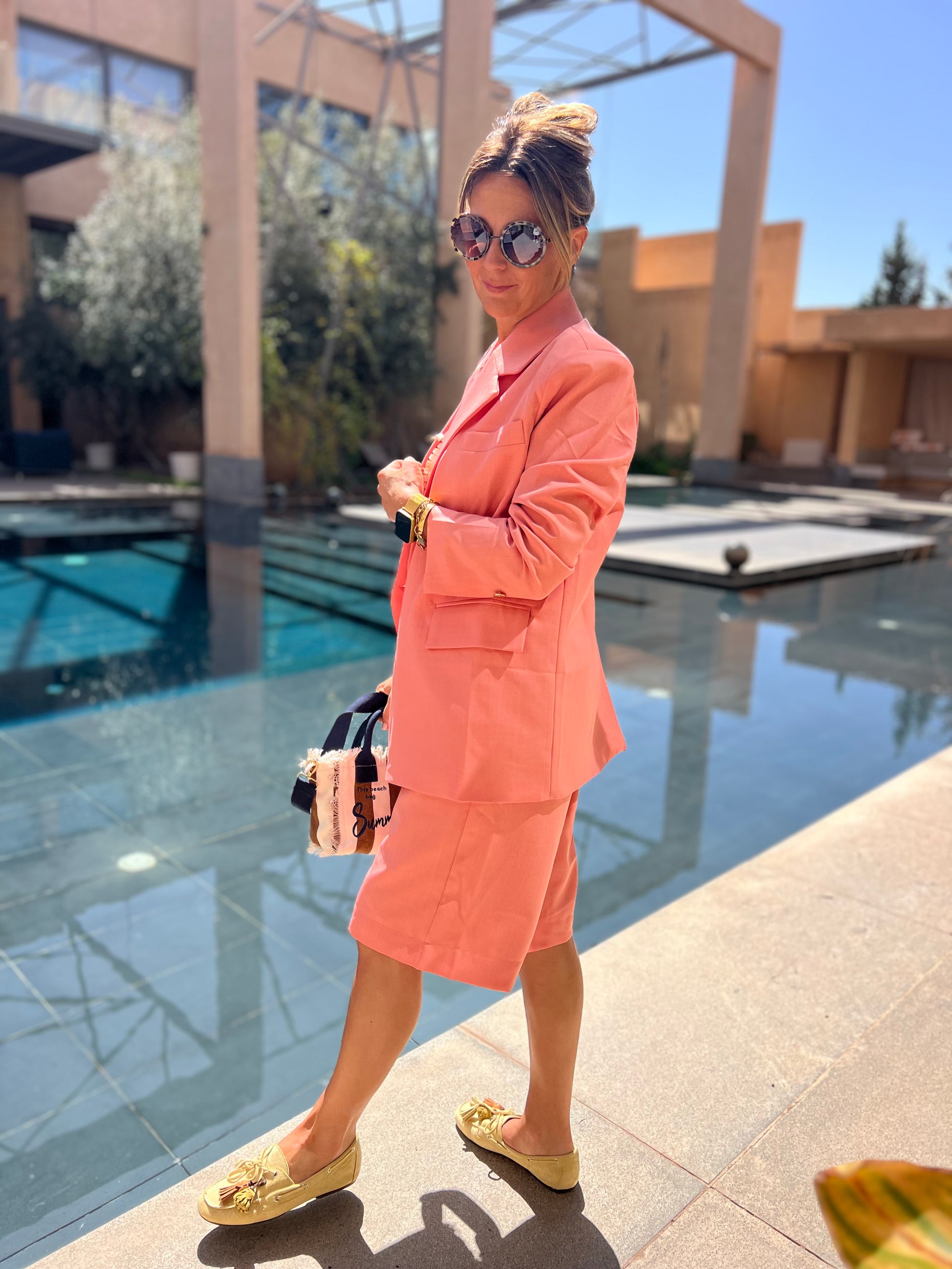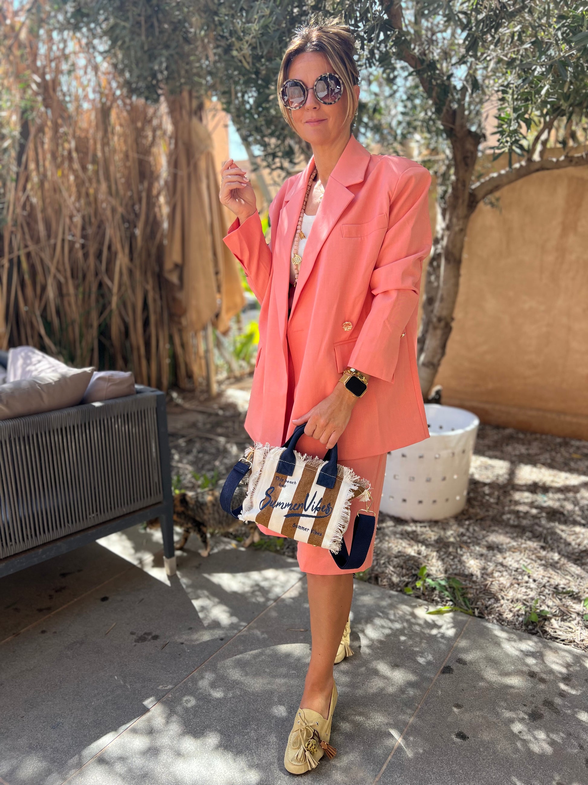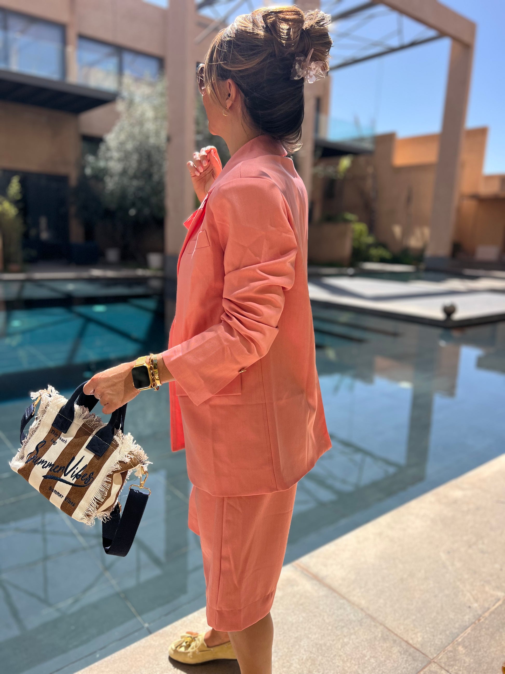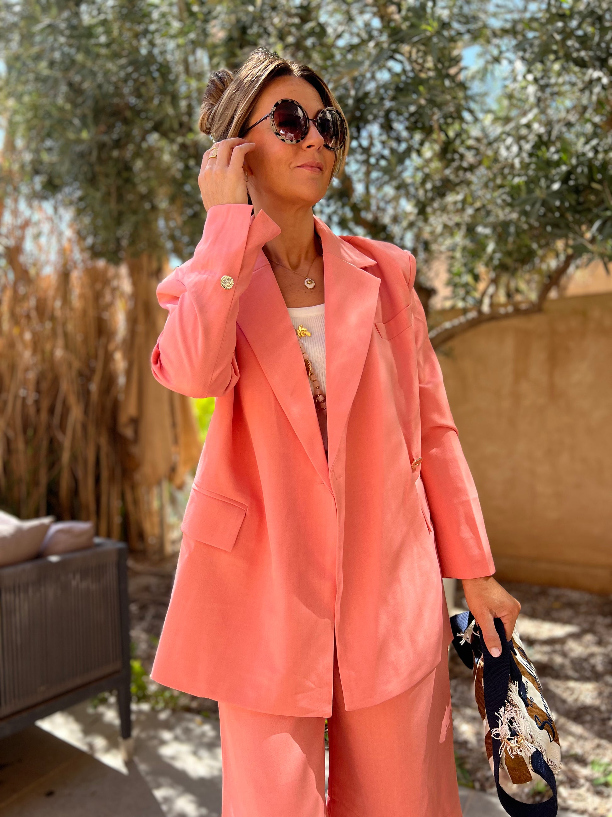 Helemaam on trend met deze gevoerde blazer met reverskraag, in een mooie zalmroze kleur.