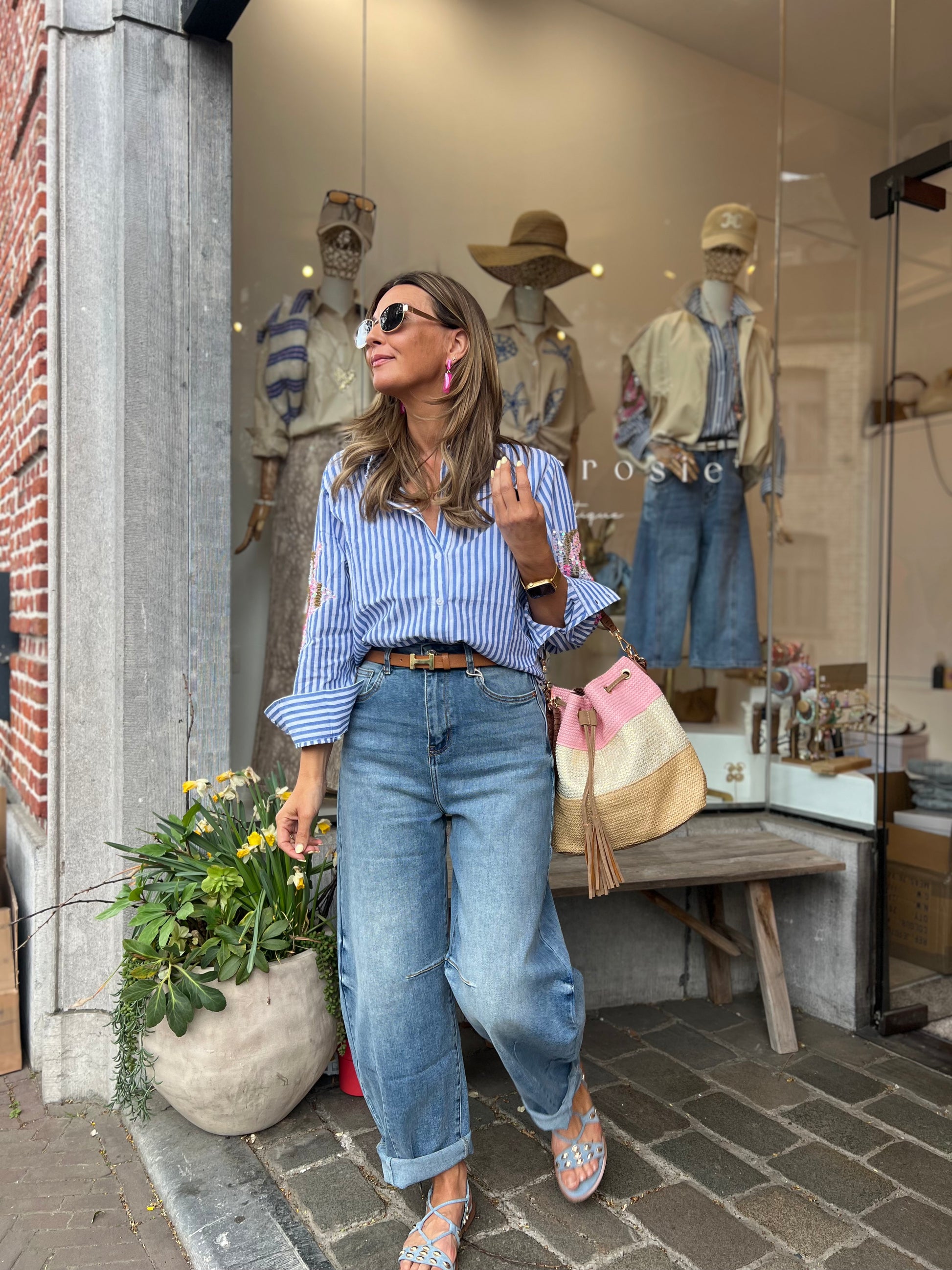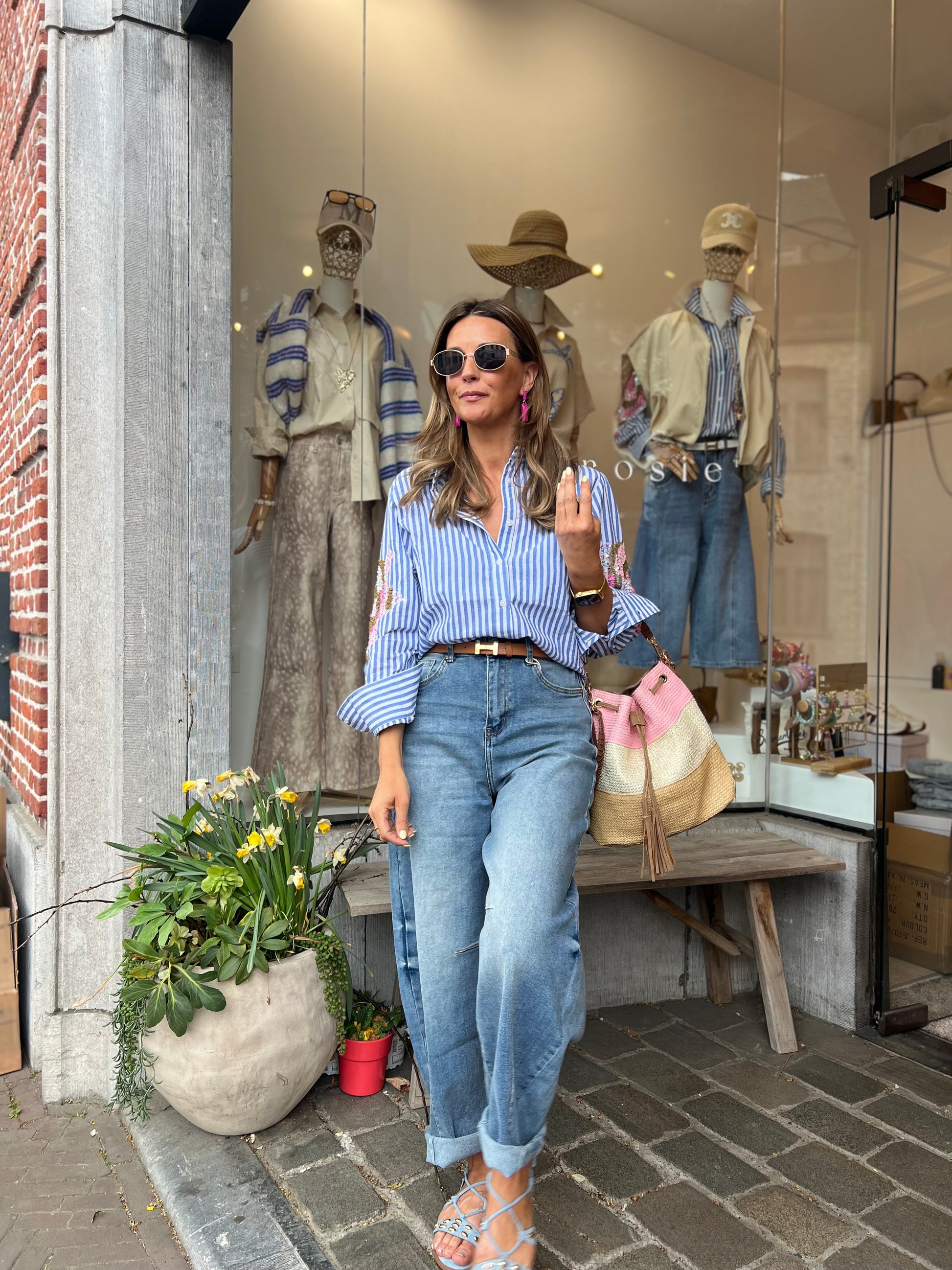 Ze heeft een lange lengte, ik rol ze op voor een casual lookje.