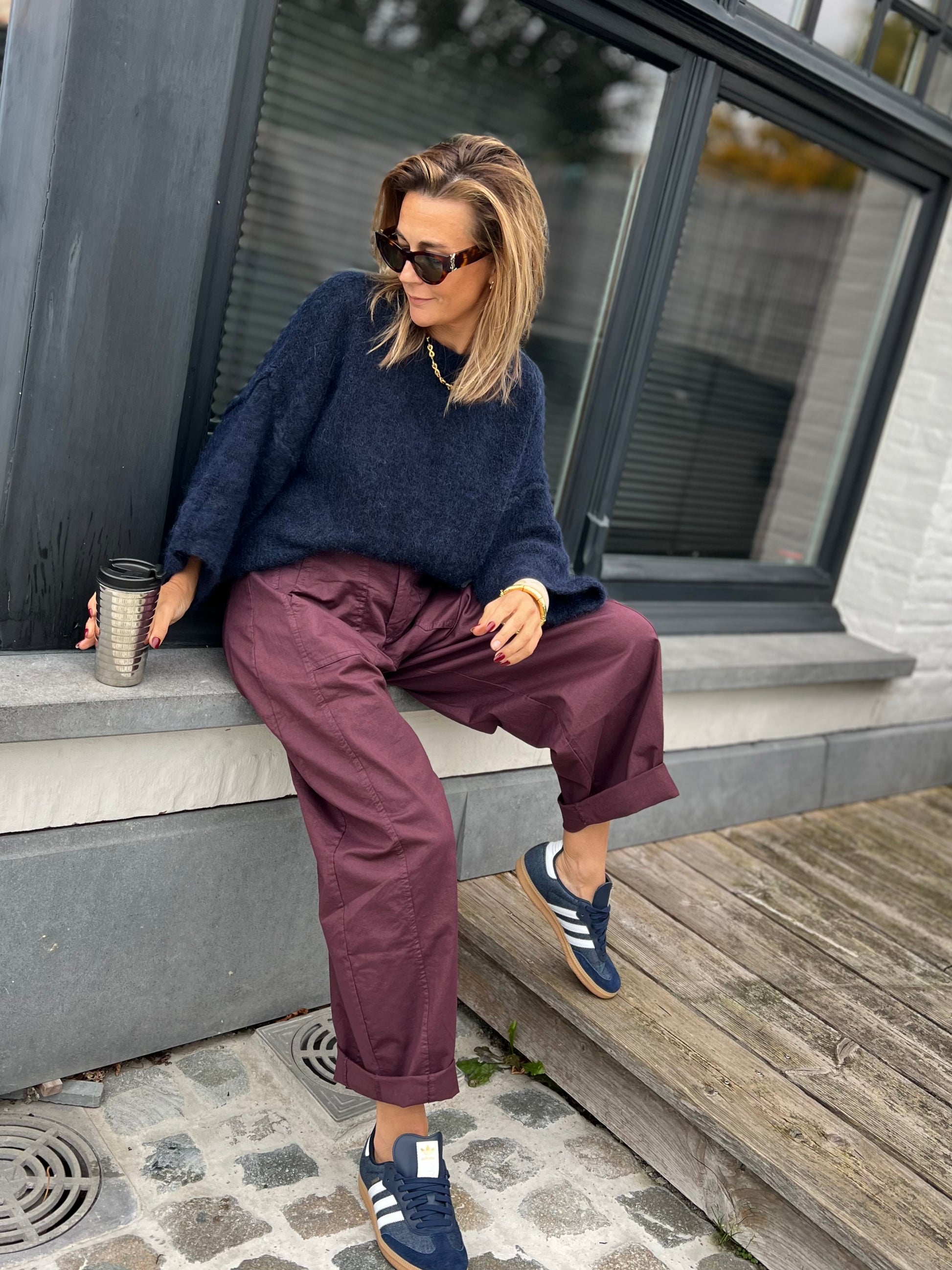 De barrel broek herken je aan haar ronde silhouet: iets wijder op het bovenbeen, met een zachte curve richting de onderkant. Deze pasvorm volgt je lichaam op een flatterende manier en accentueert subtiel de taille.