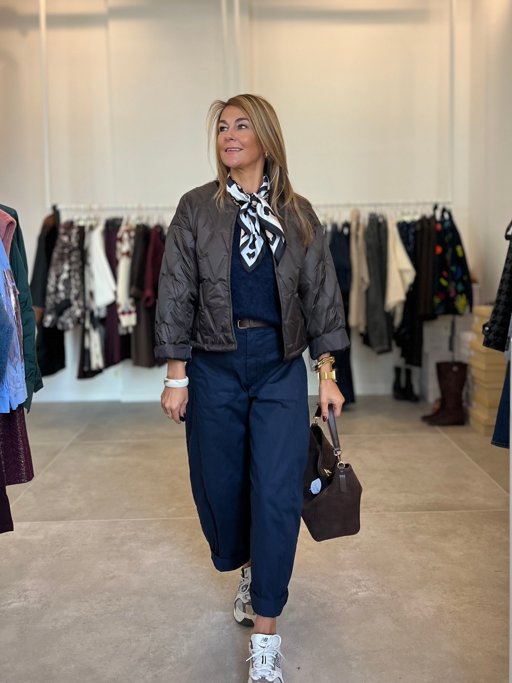 De barrel broek herken je aan haar ronde silhouet: iets wijder op het bovenbeen, met een zachte curve richting de onderkant. Deze pasvorm volgt je lichaam op een flatterende manier en accentueert subtiel de taille.