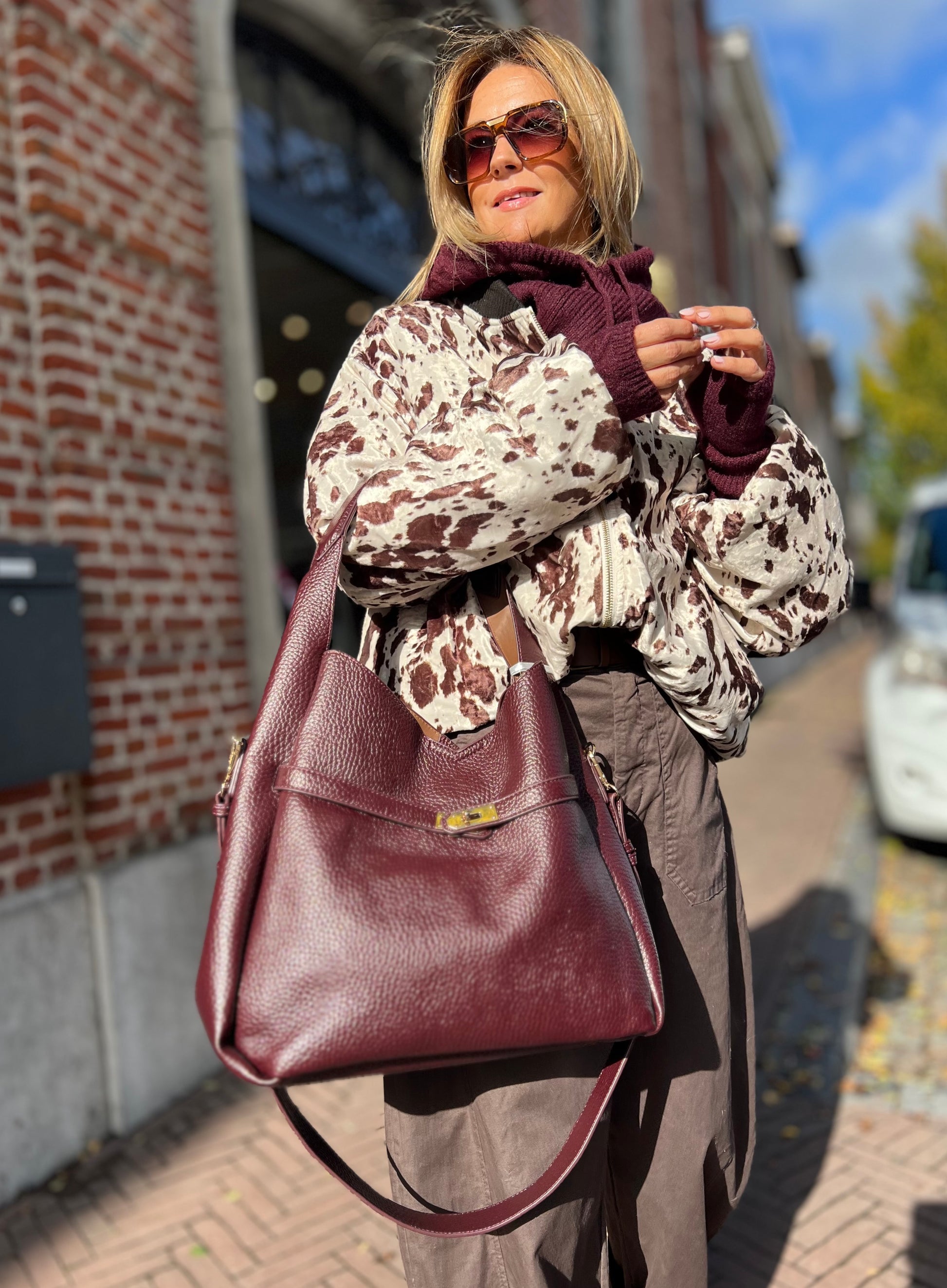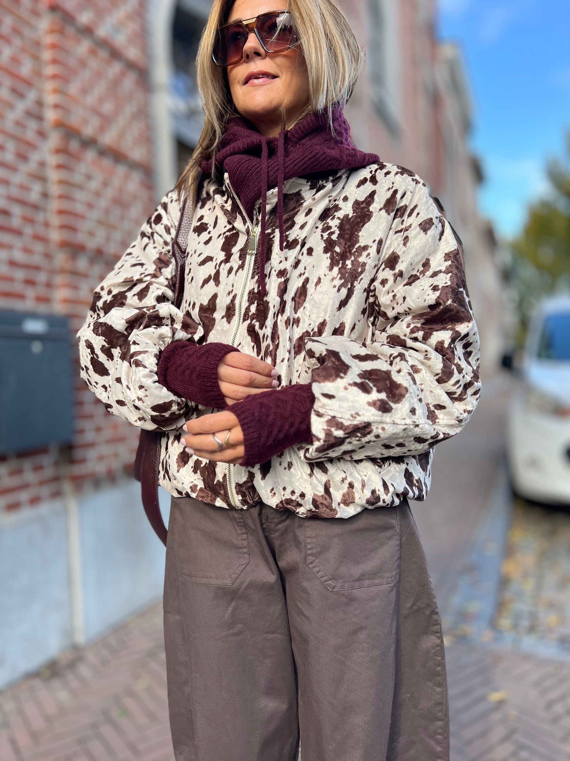 Trendy en lekker warm, deze bordeauxkleurige gebreide halskraag met kap.