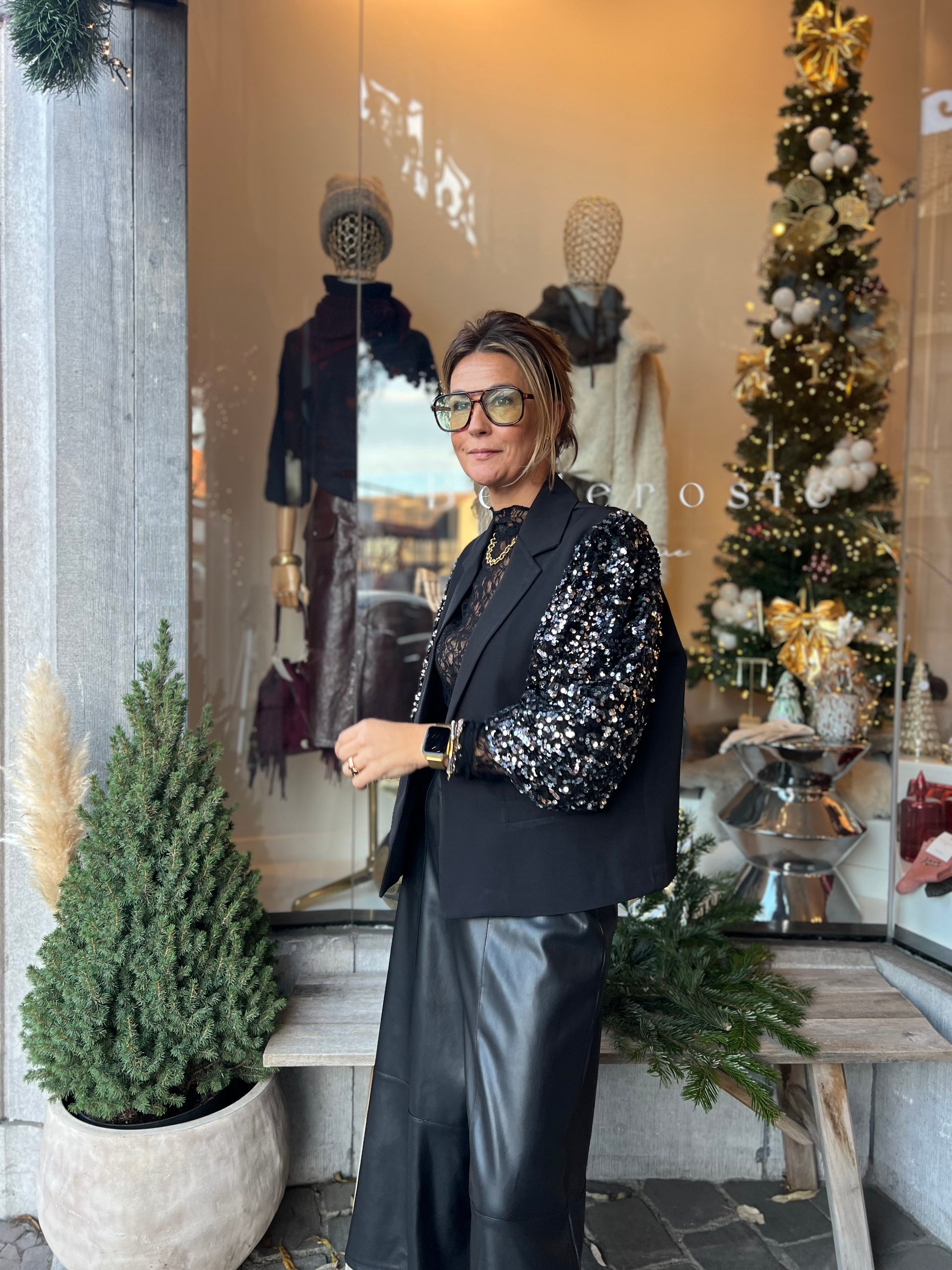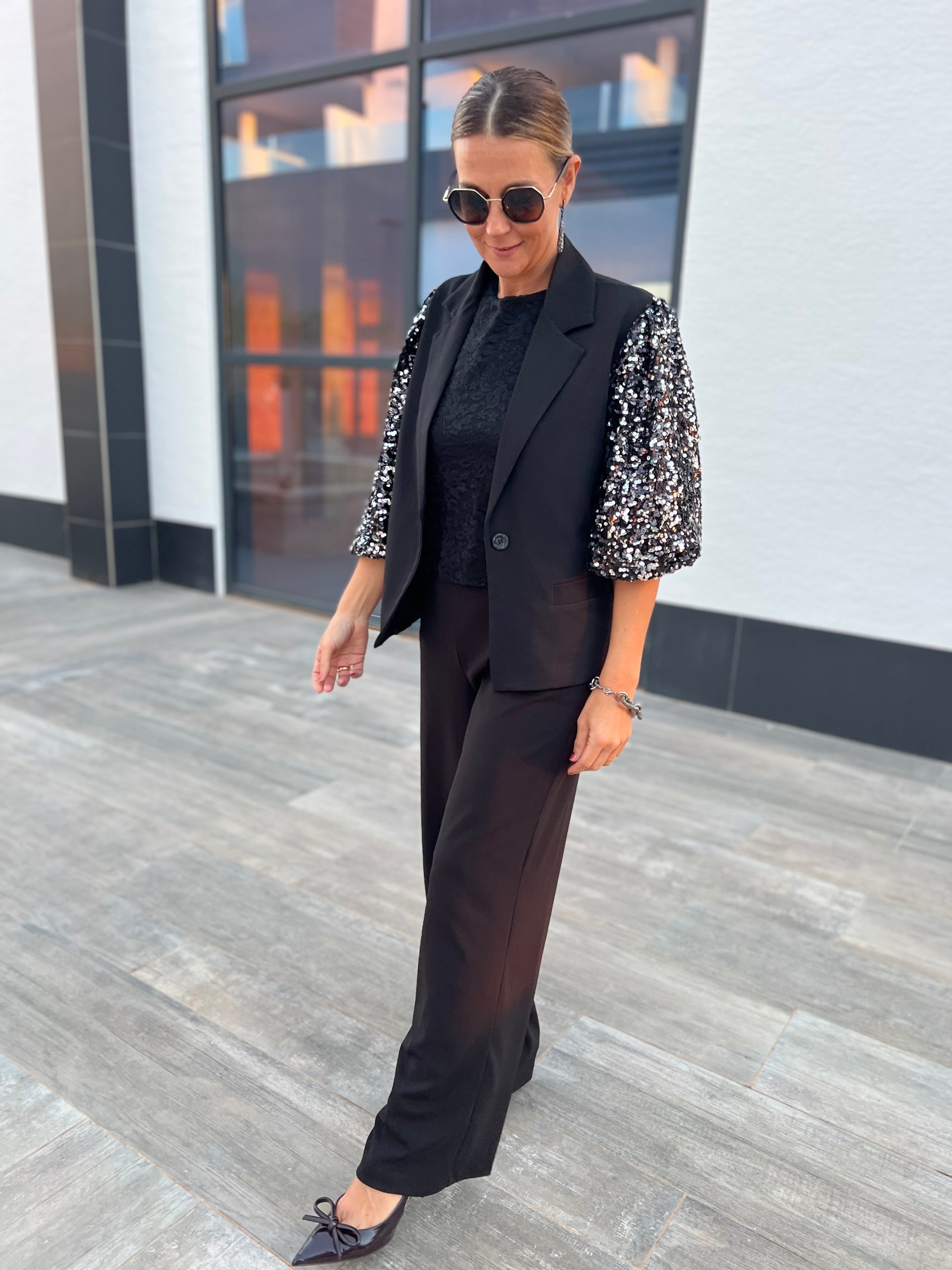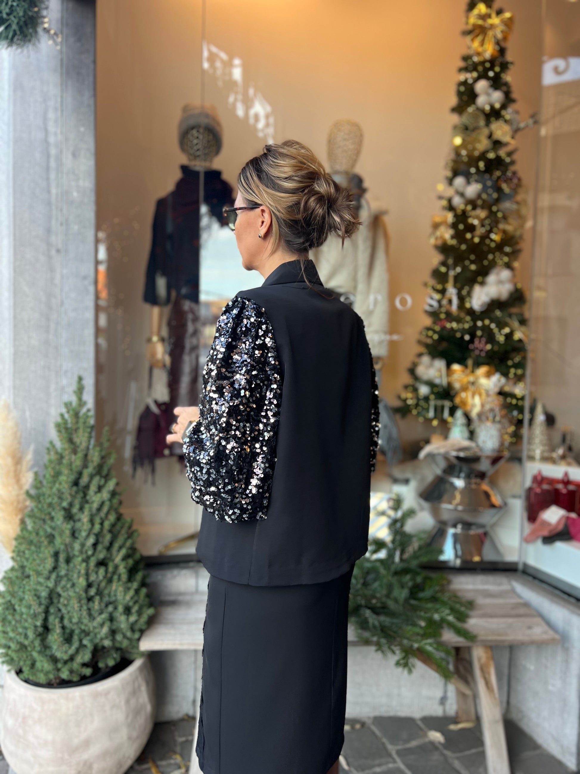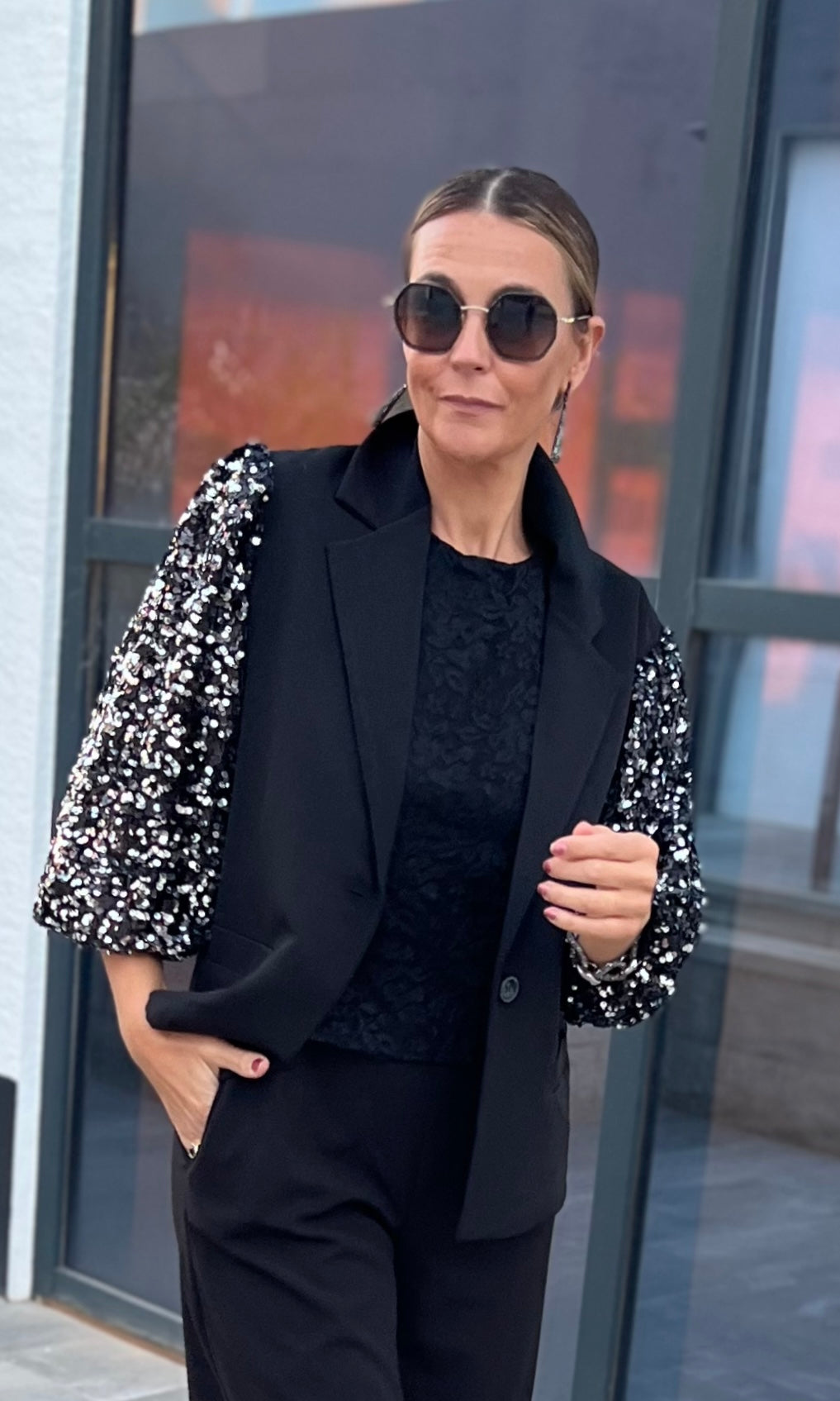 Feestelijke blazer met glinsterende 3/4 ballonmouwen.