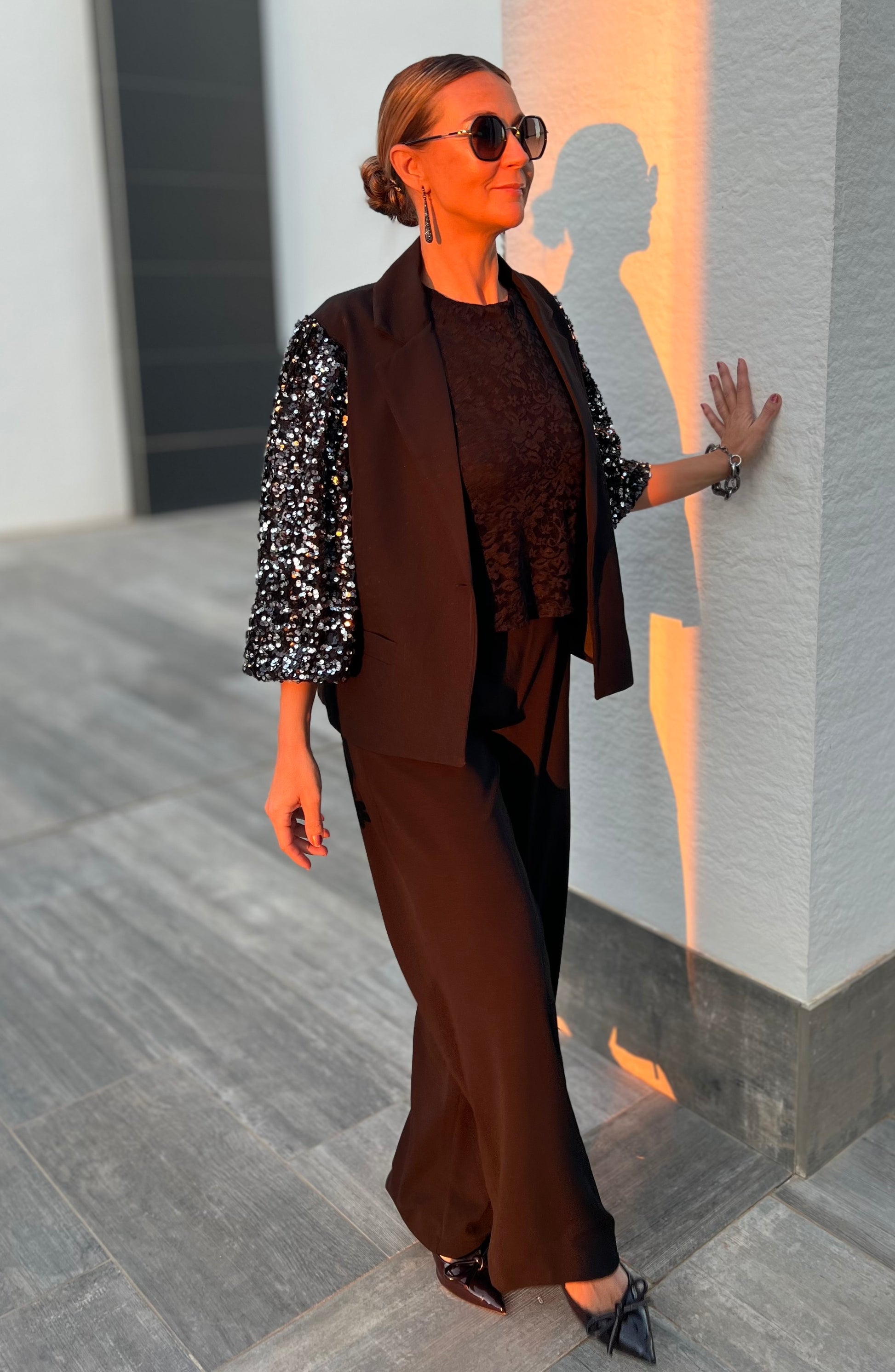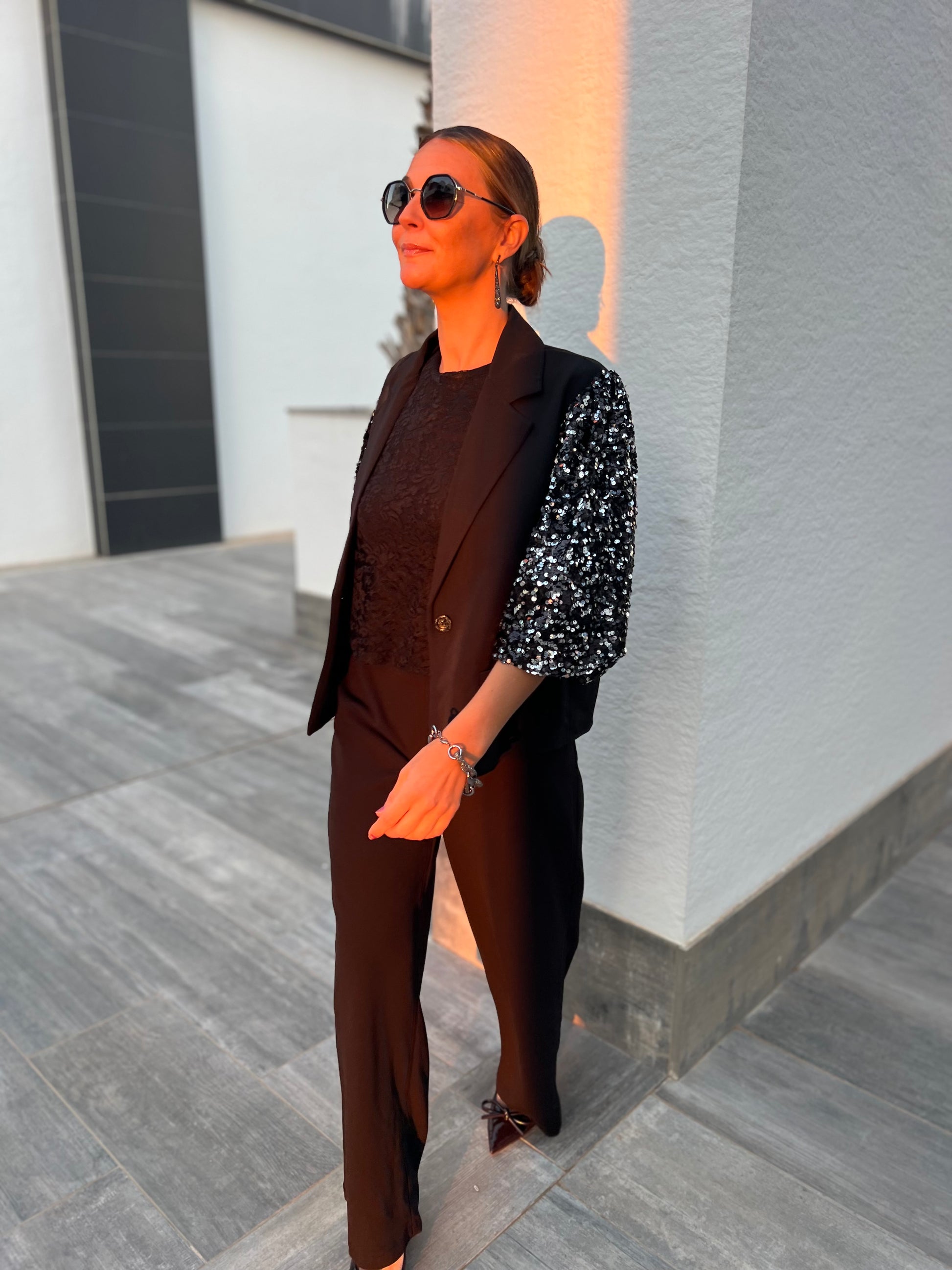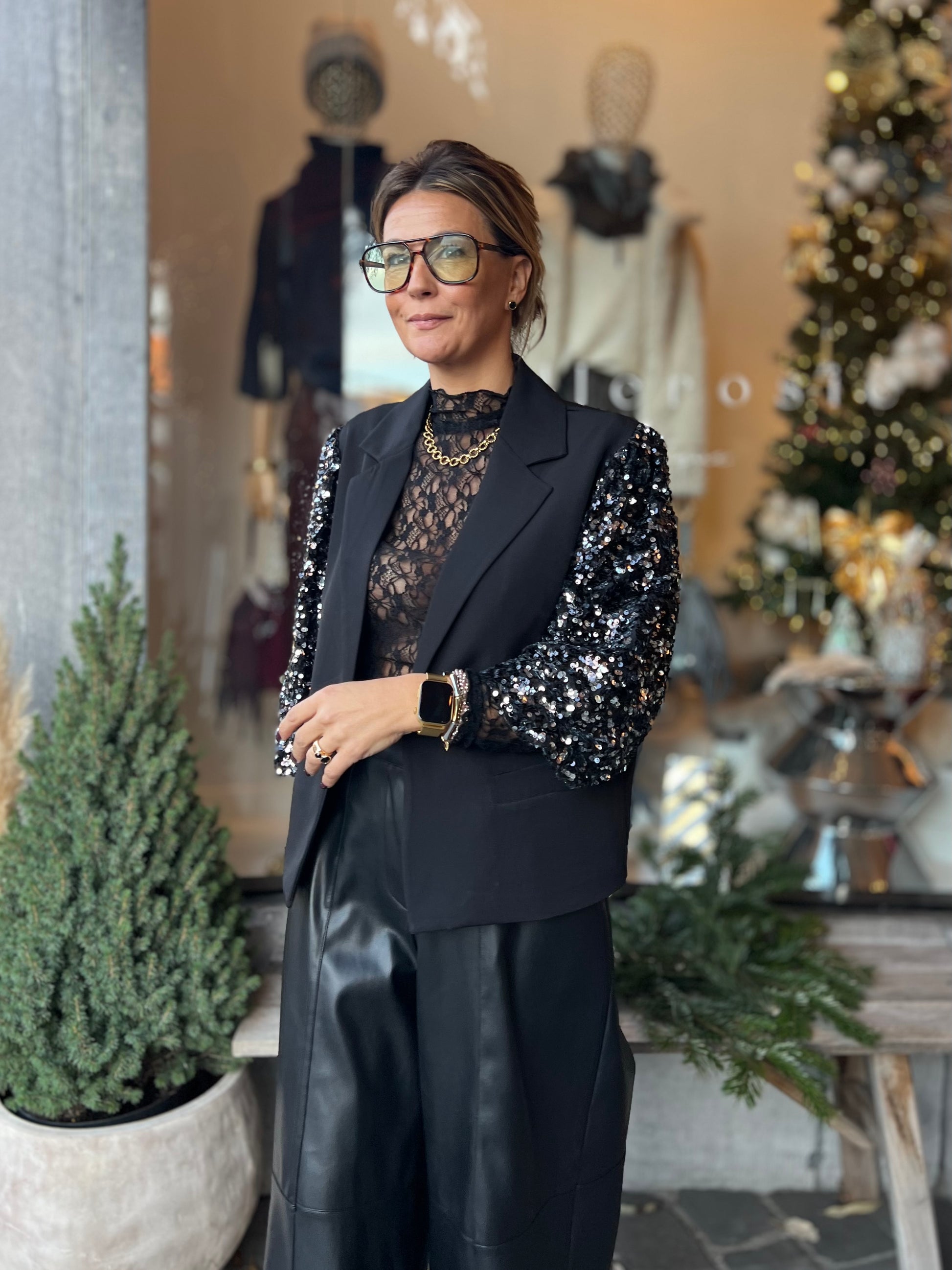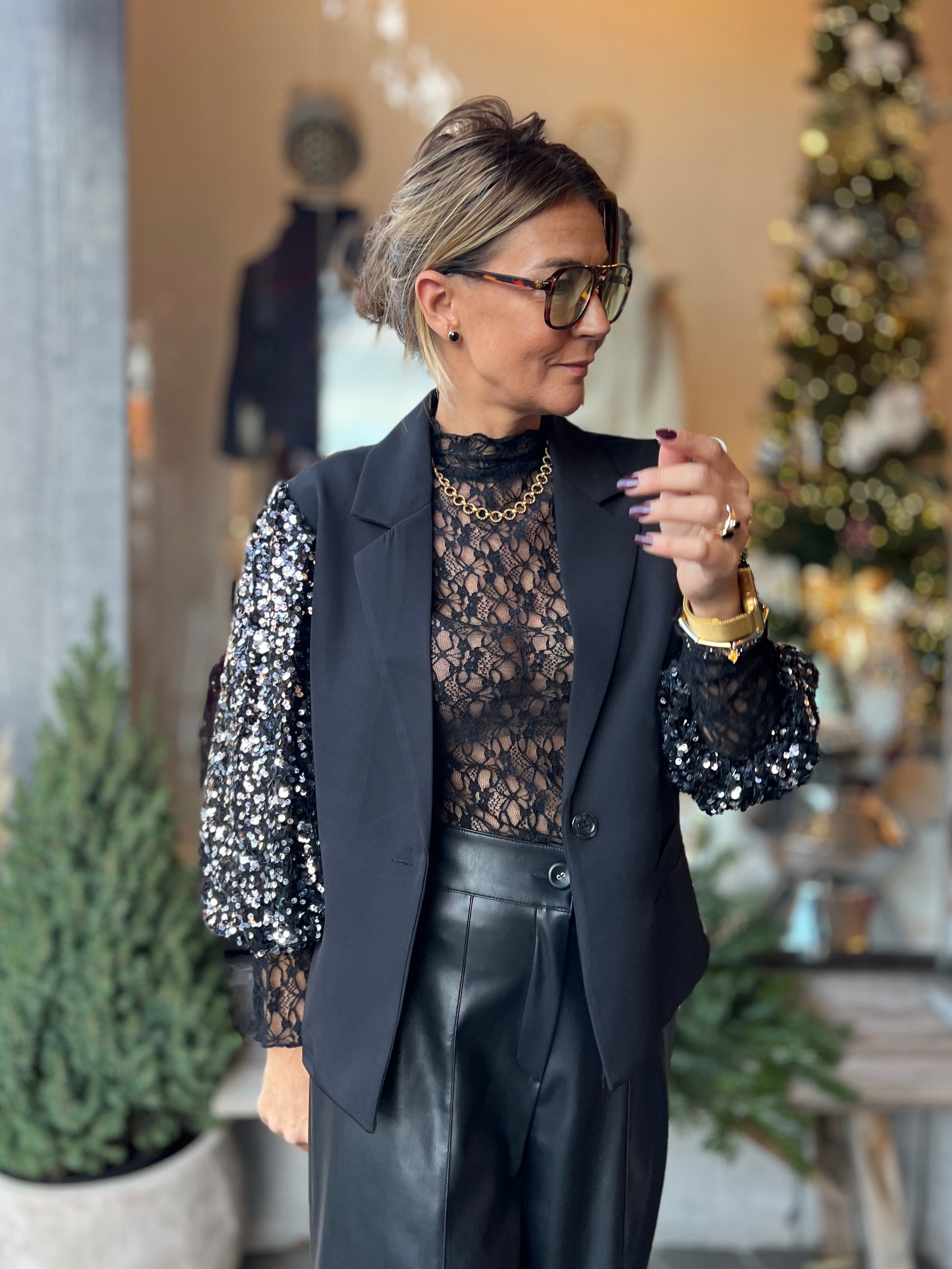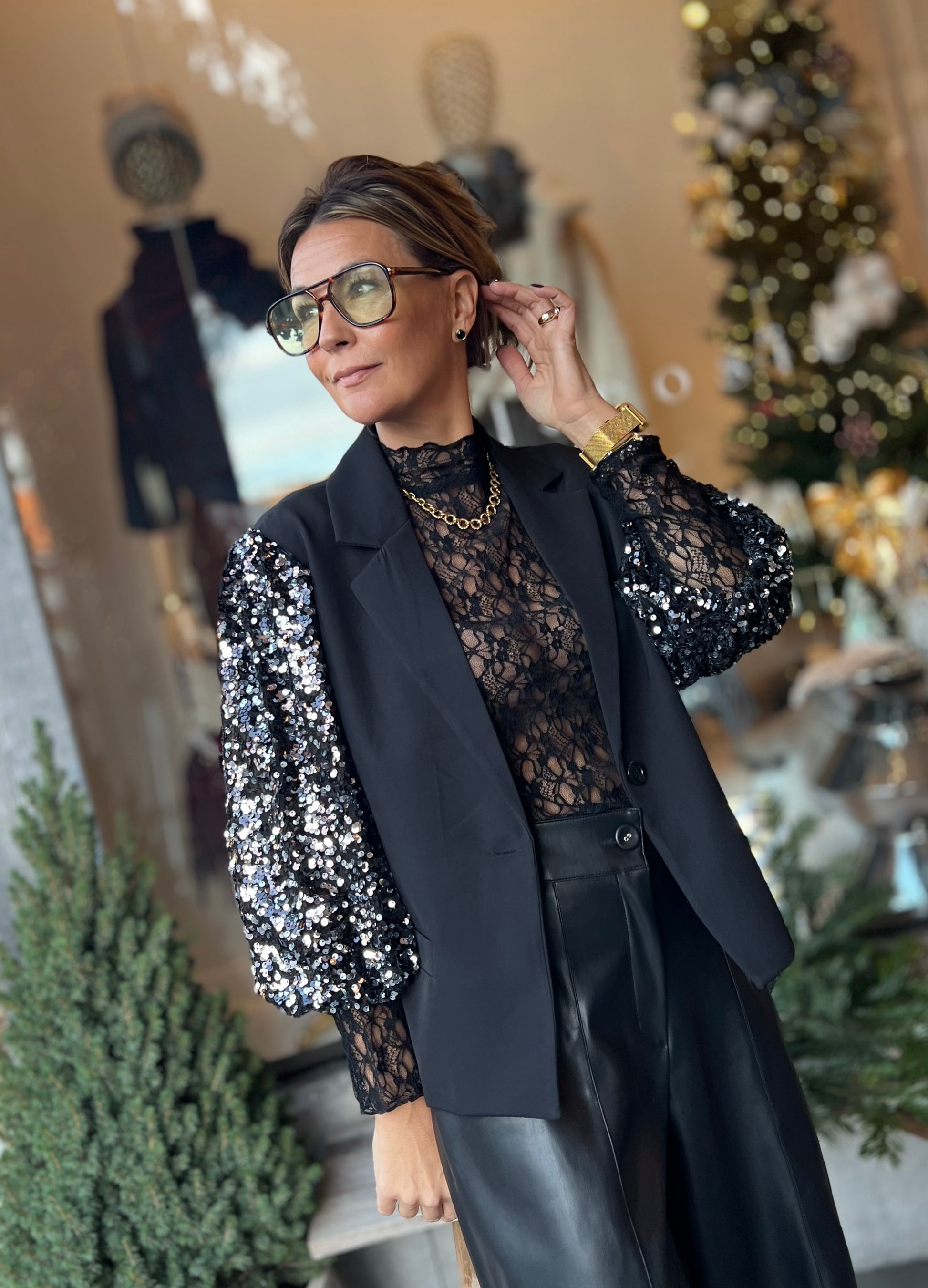 Feestelijke blazer met glinsterende 3/4 ballonmouwen.