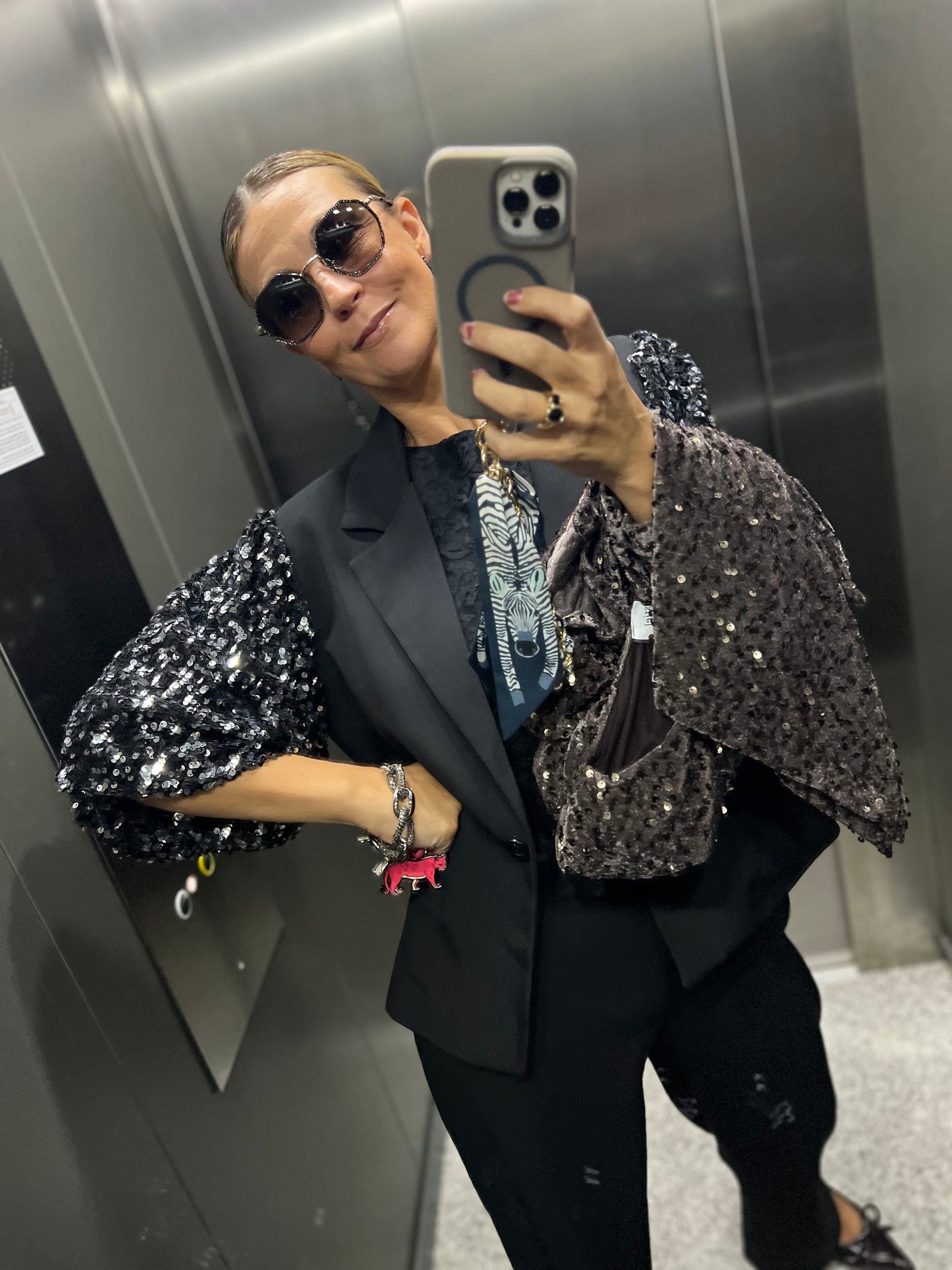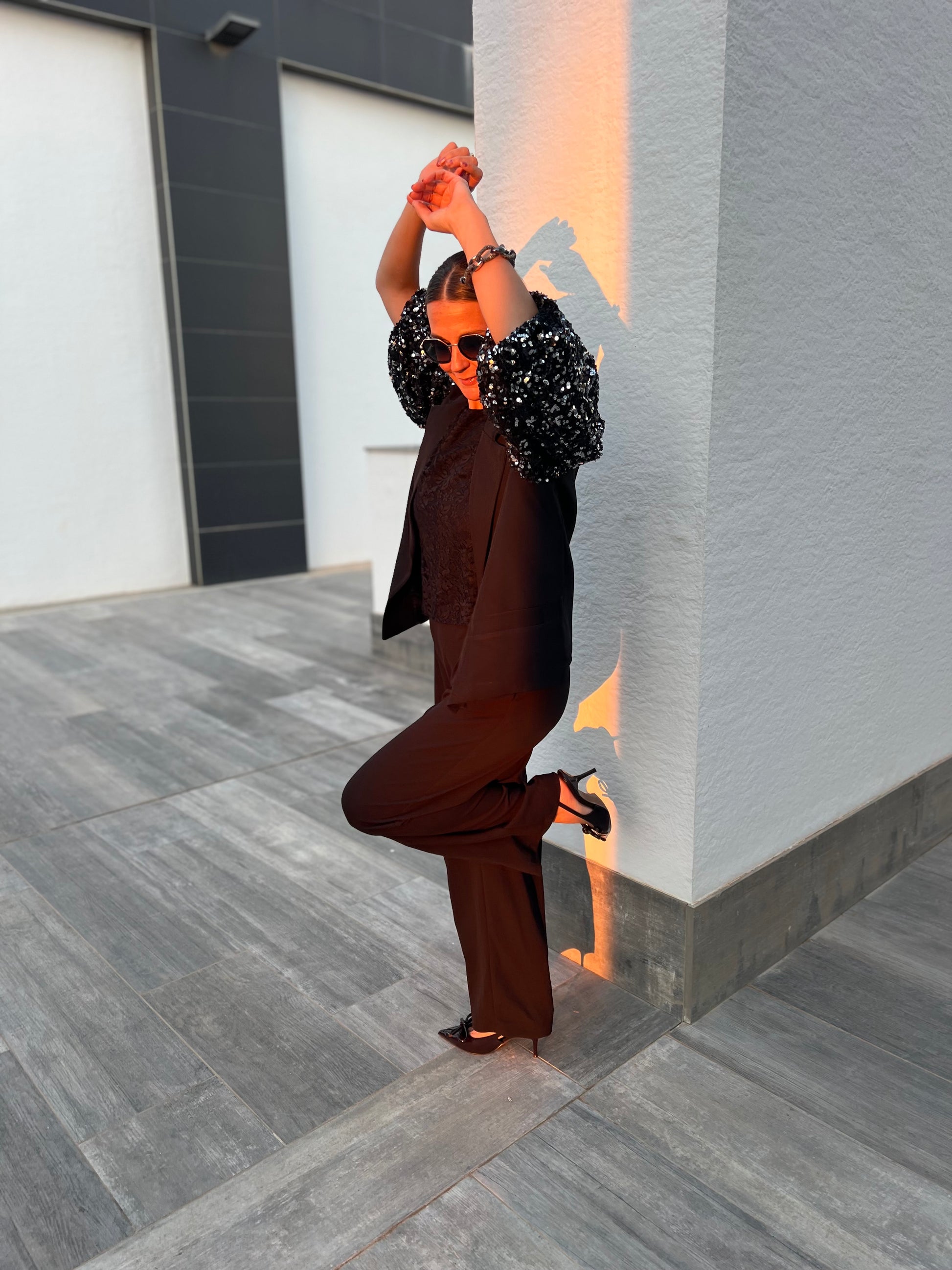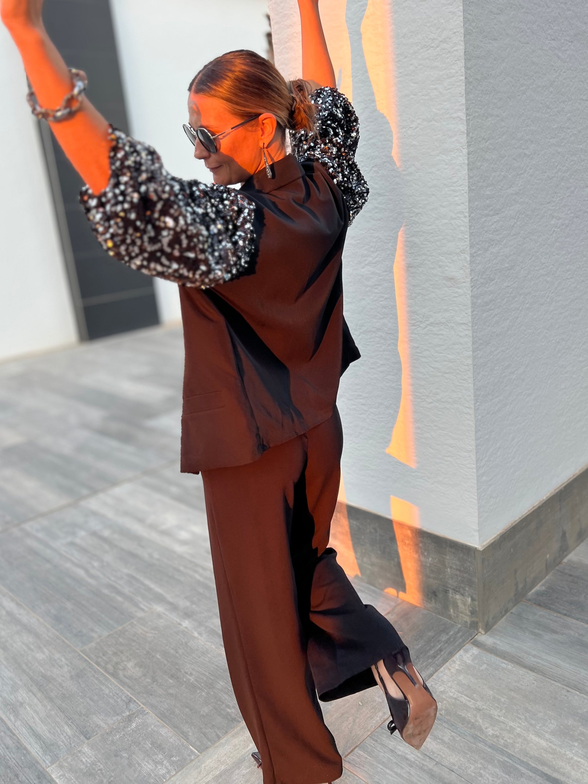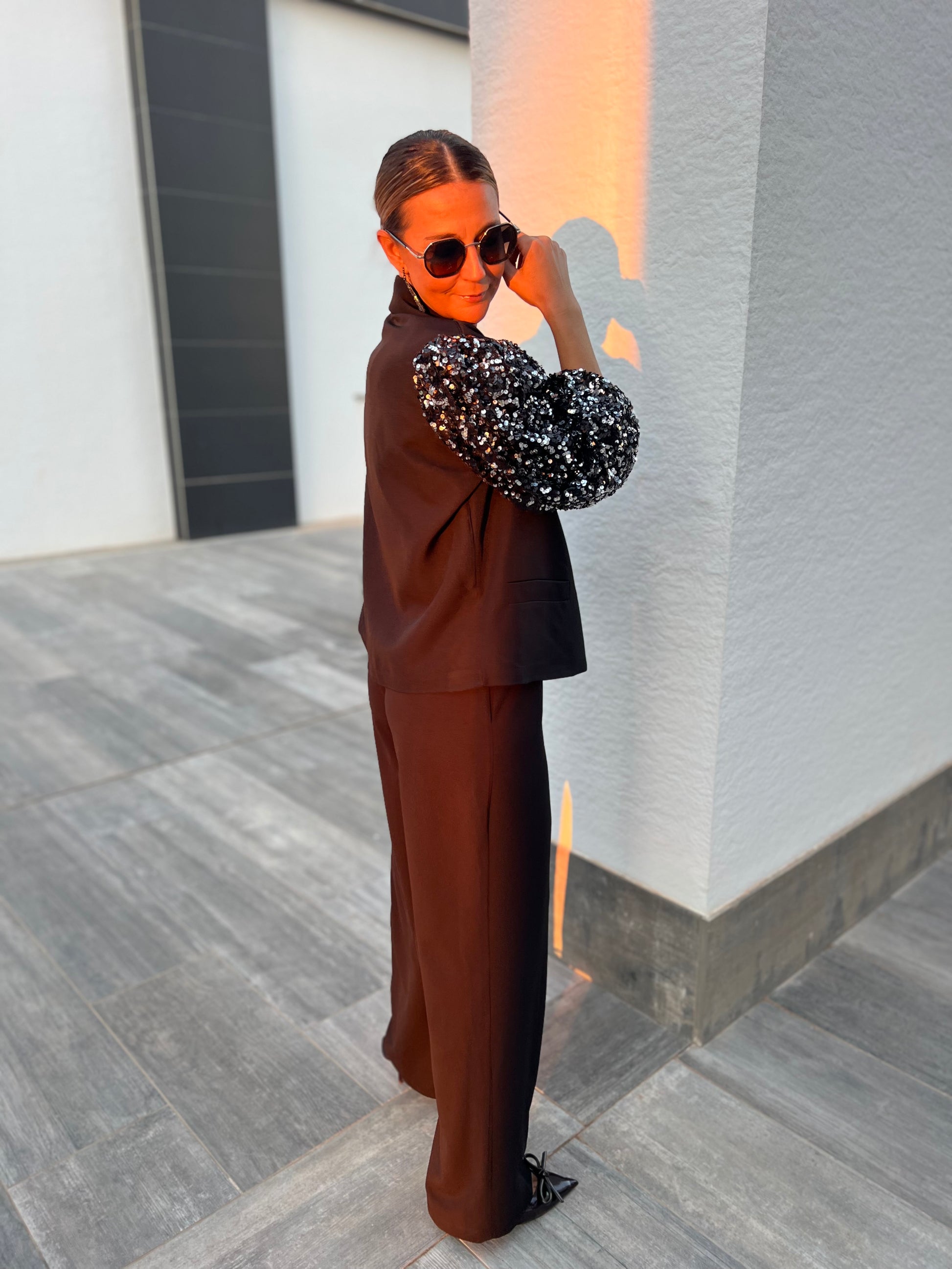 Feestelijke blazer met glinsterende 3/4 ballonmouwen.