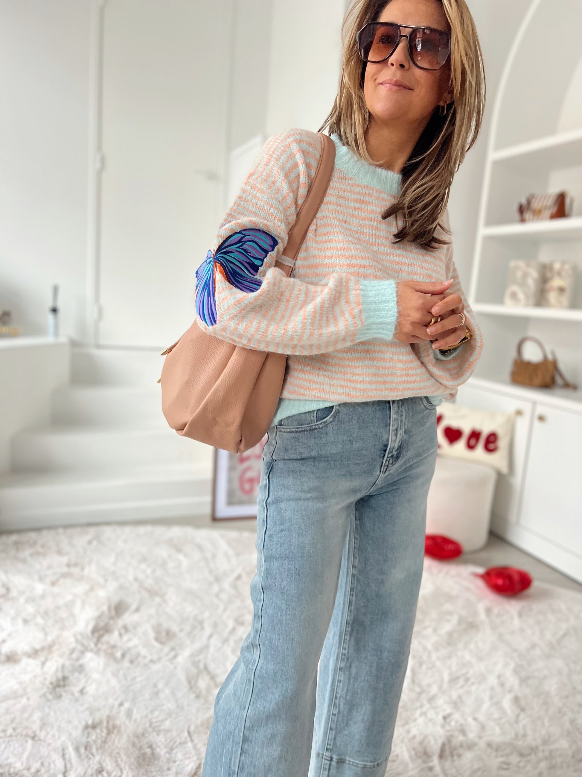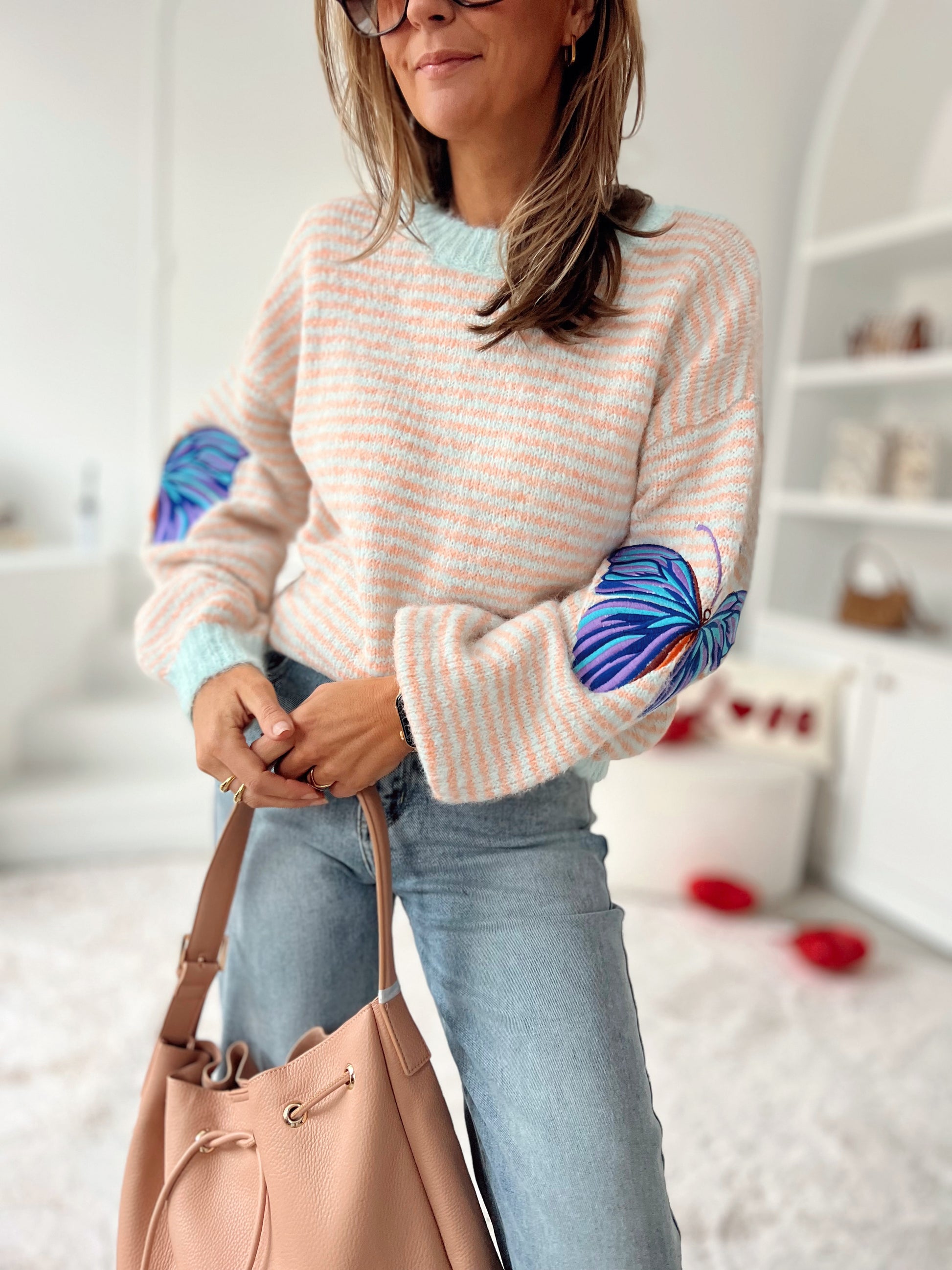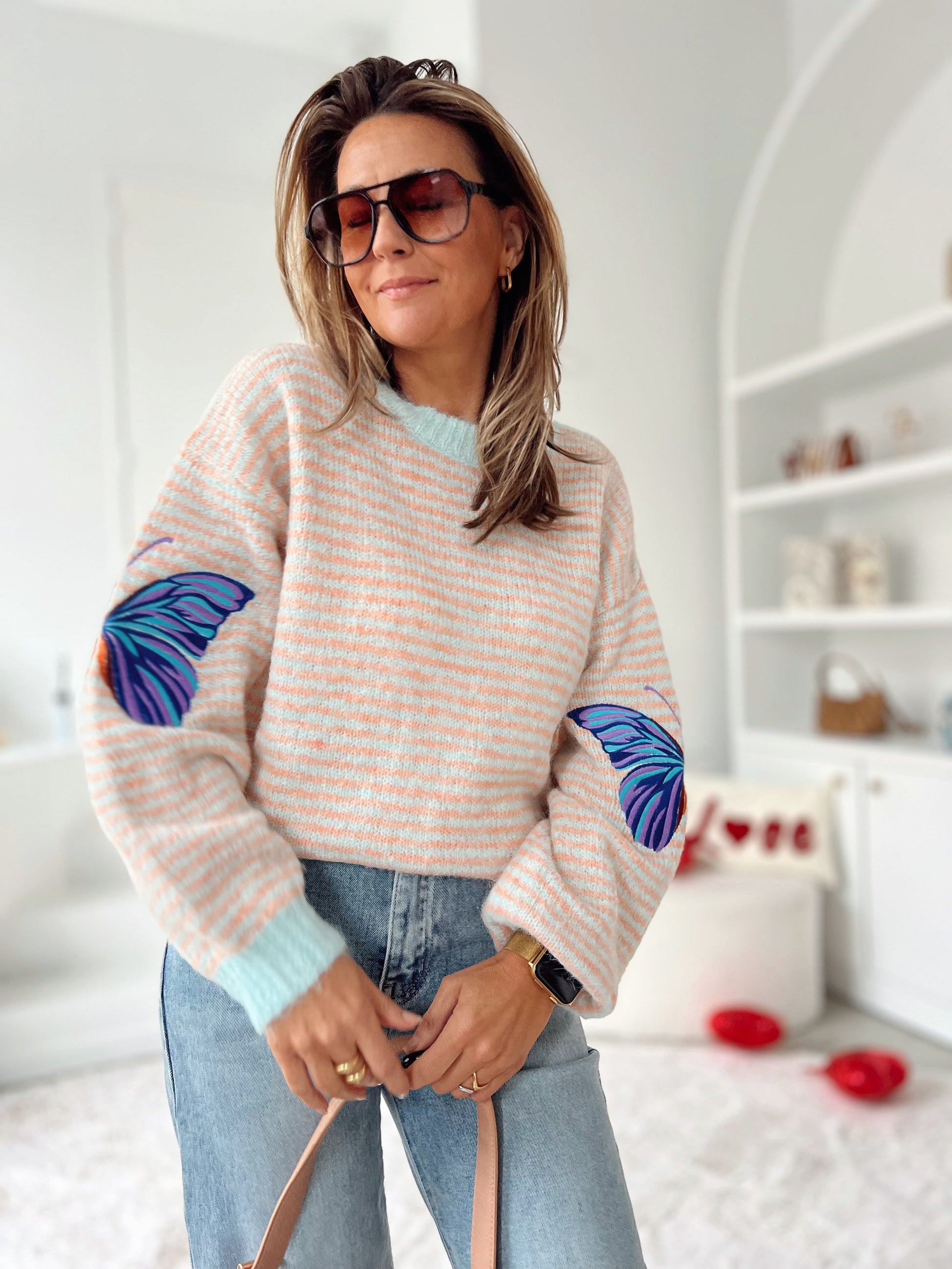 Pastelkleurige pull met ronde hals en lange mouwen.