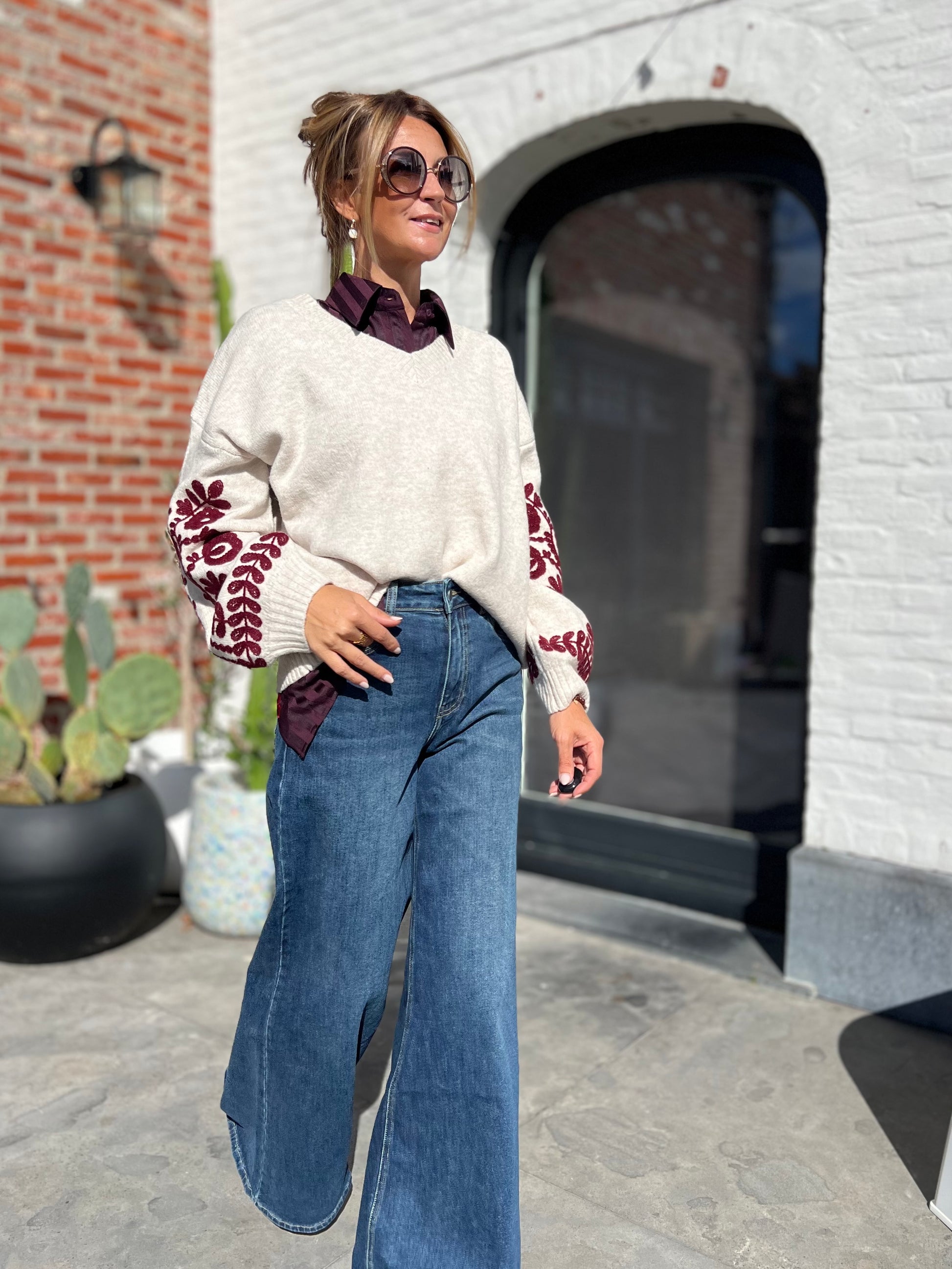 Extra wide leg jeans met stretch.