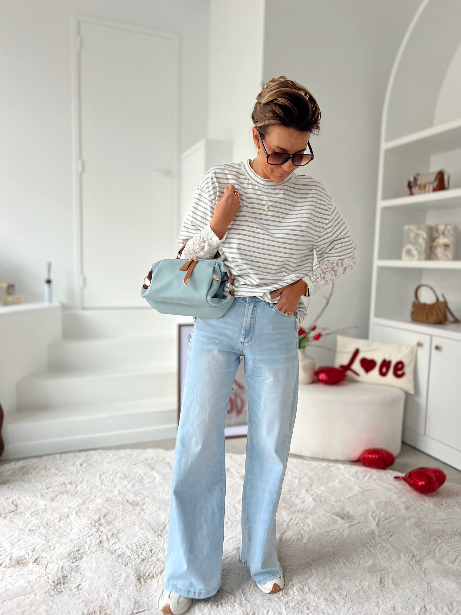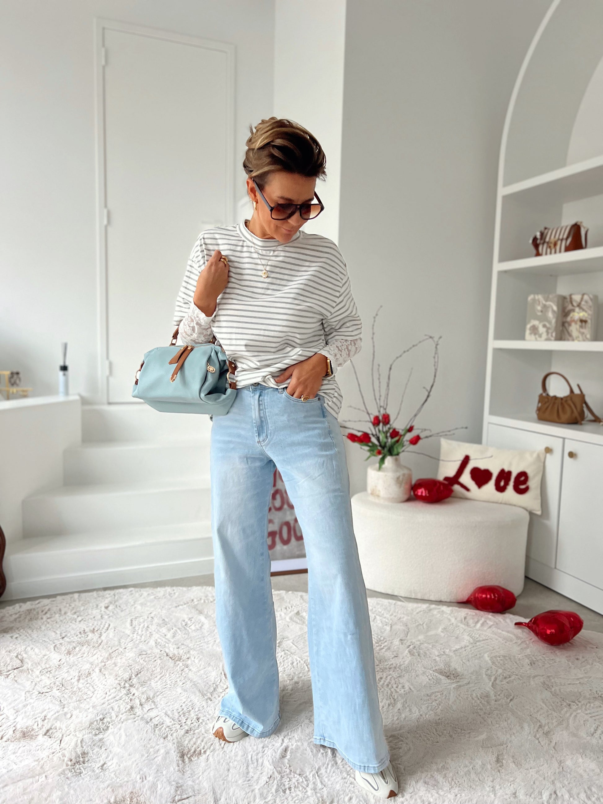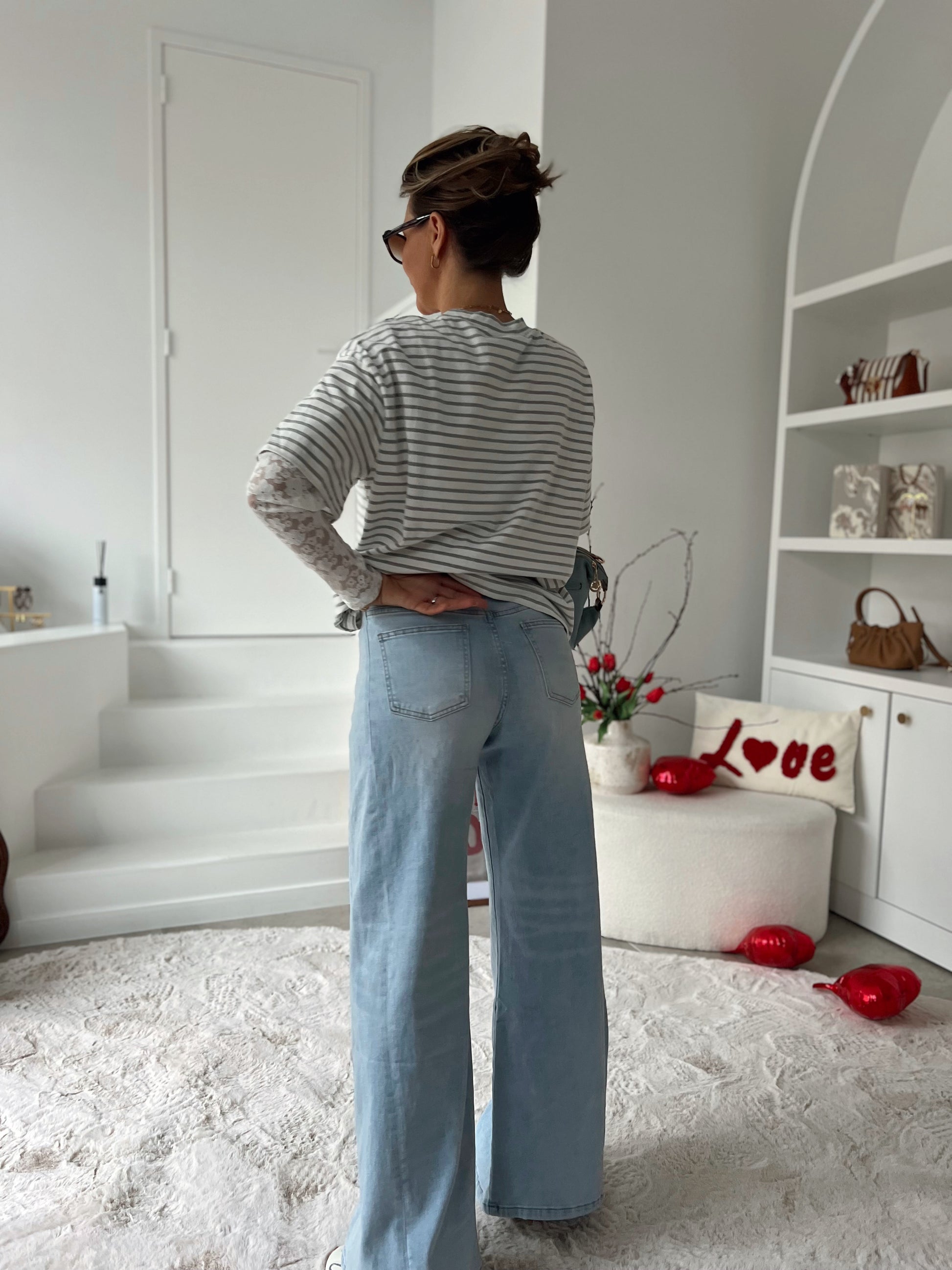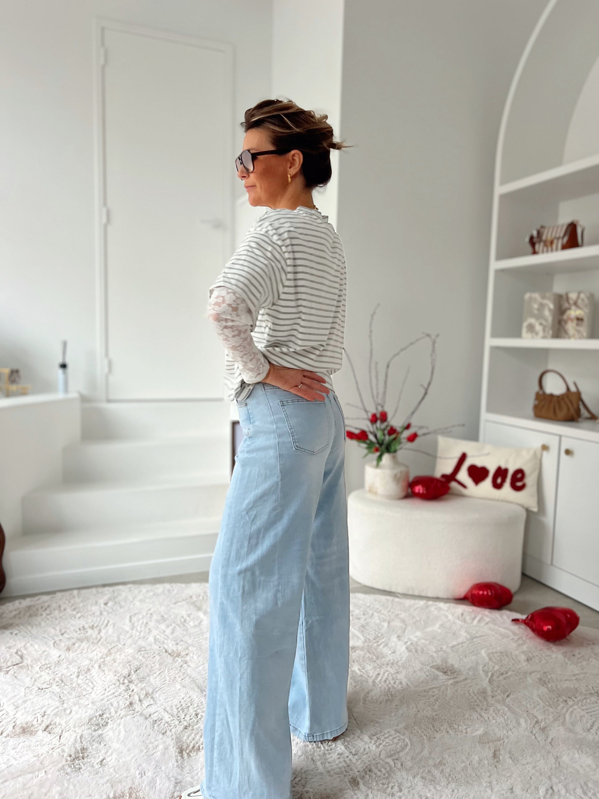 Comfortabele wide leg jeans in een lichtblauwe kleur.