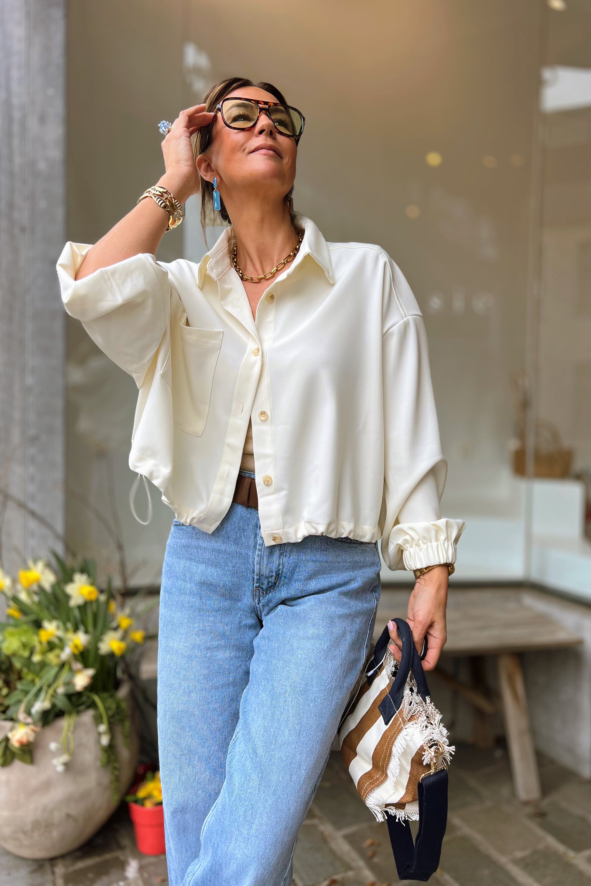 Elegante ecru cropped blouse