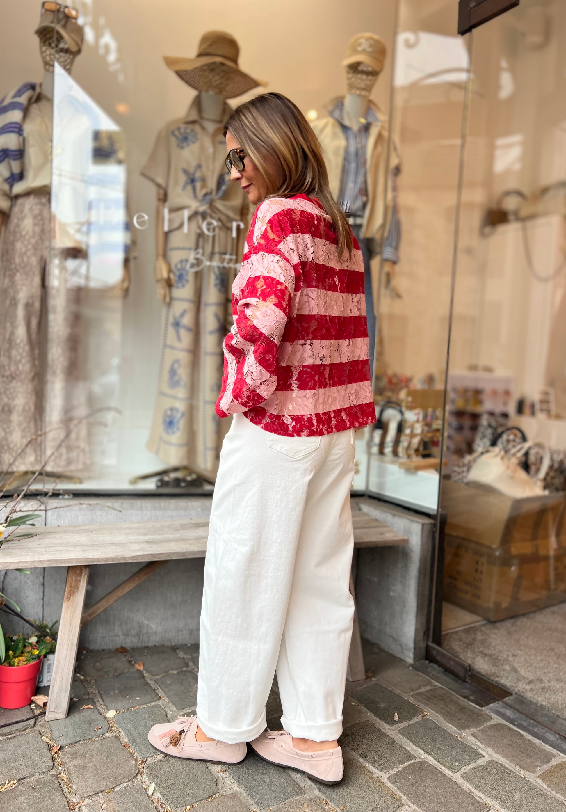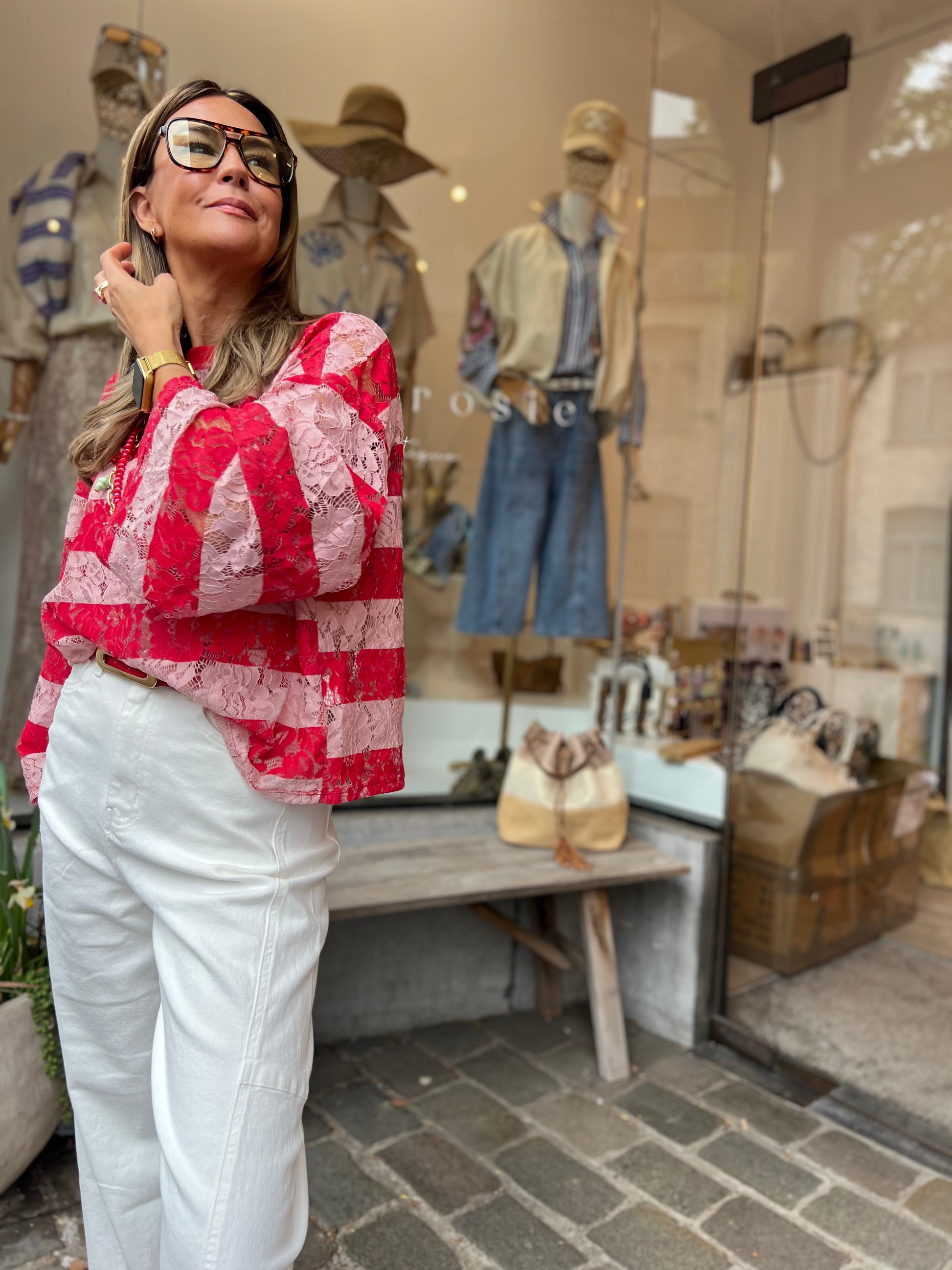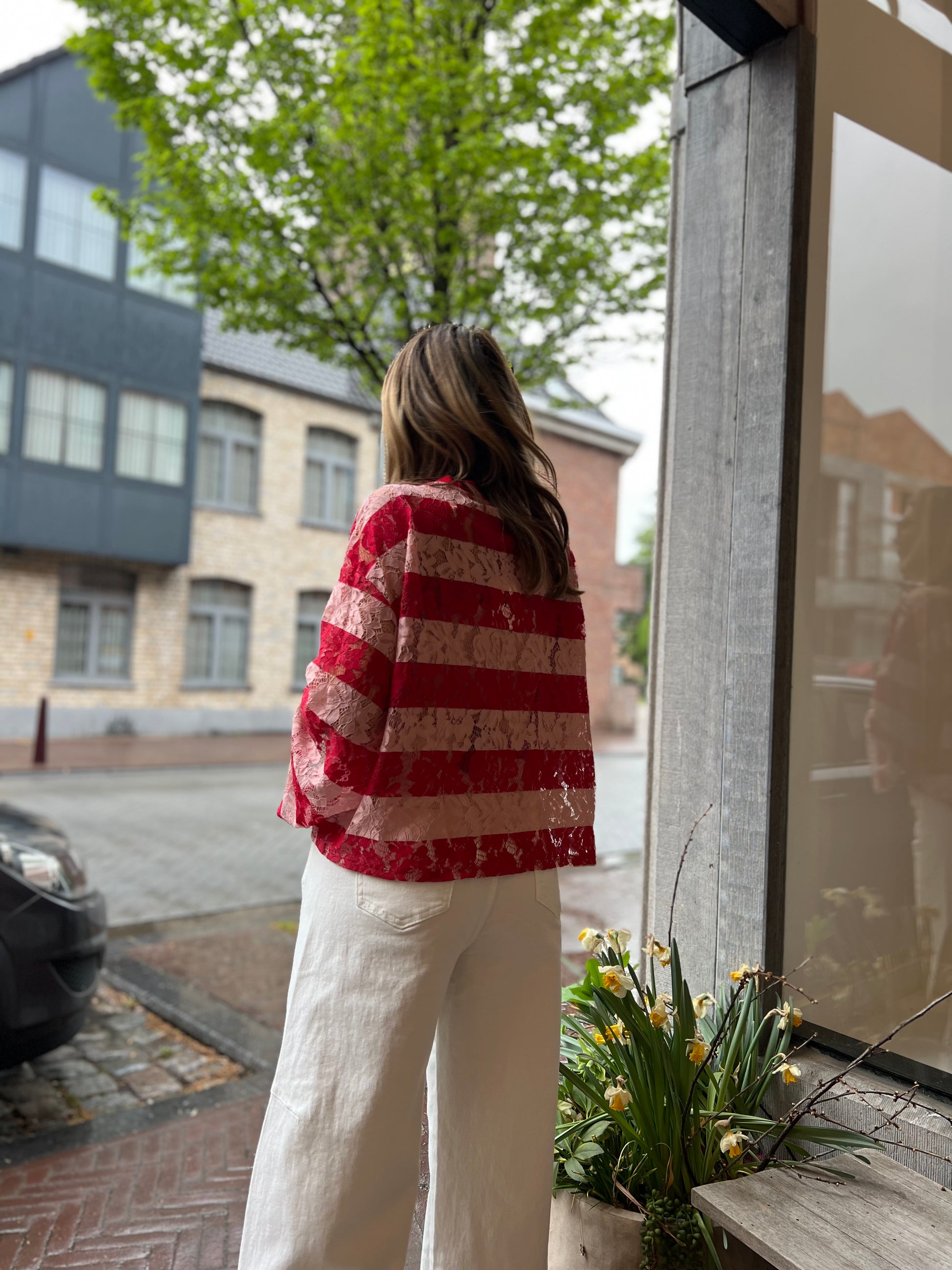 LIZ LACE SHIRT RED/ROSÉ