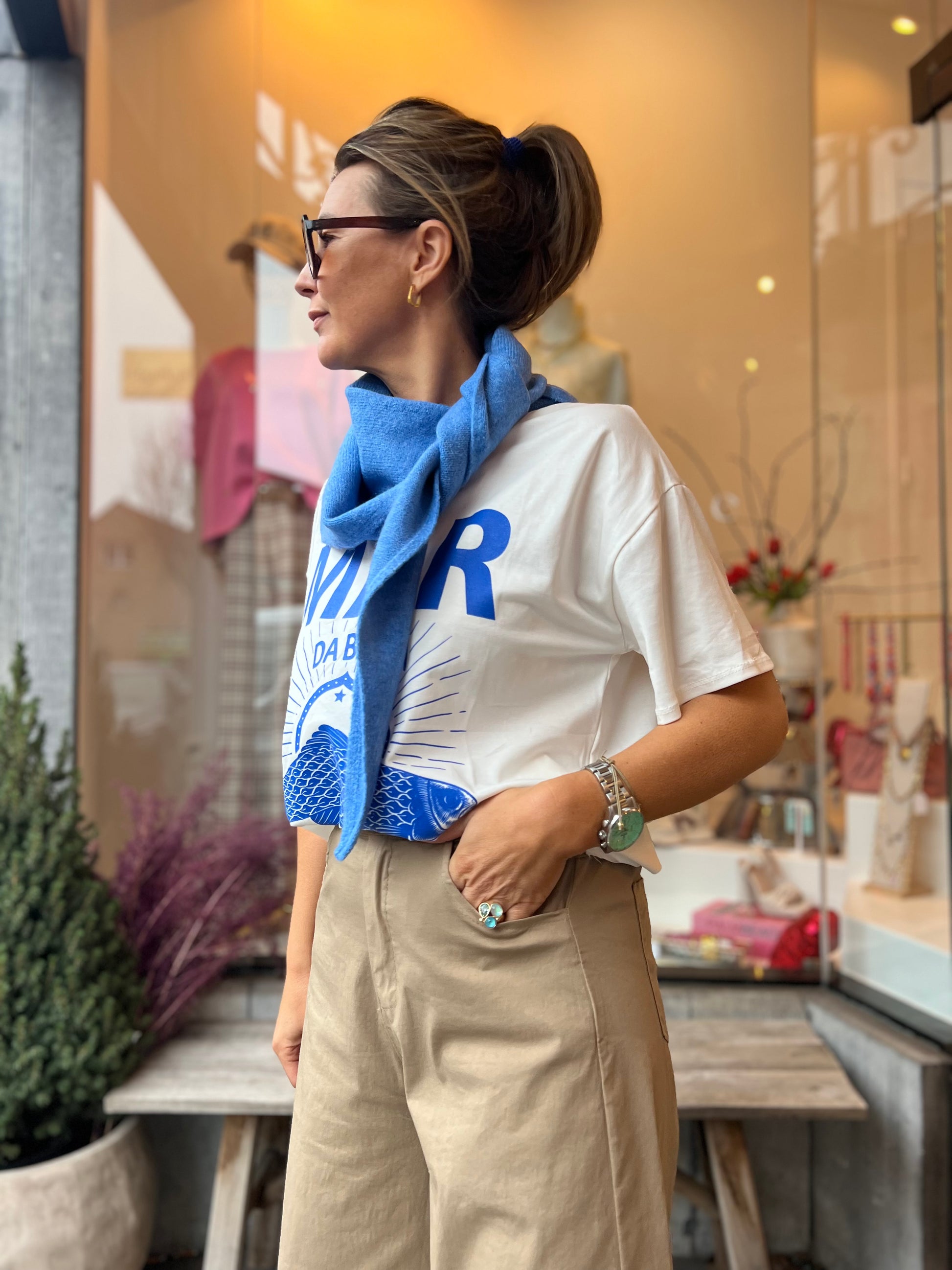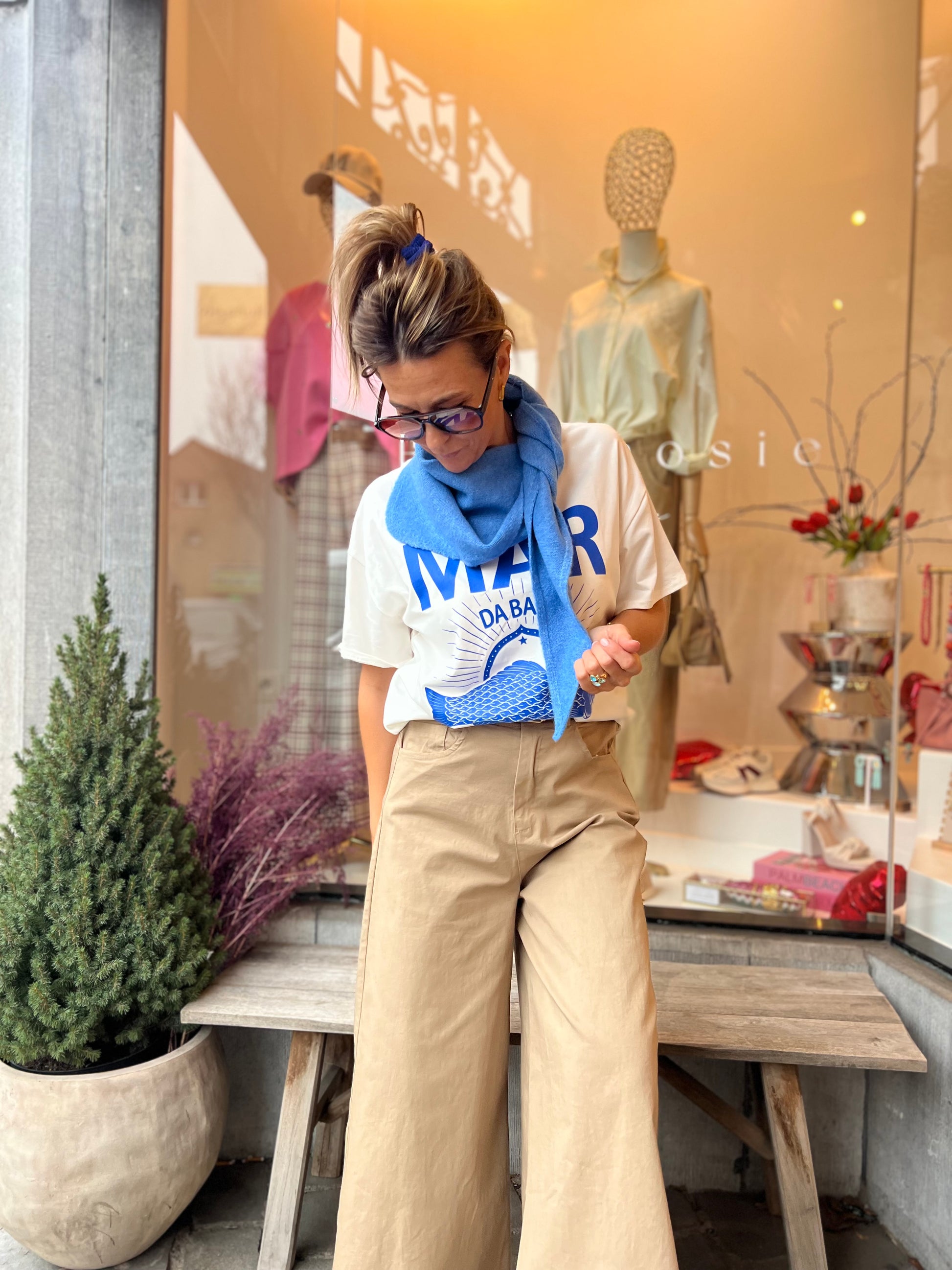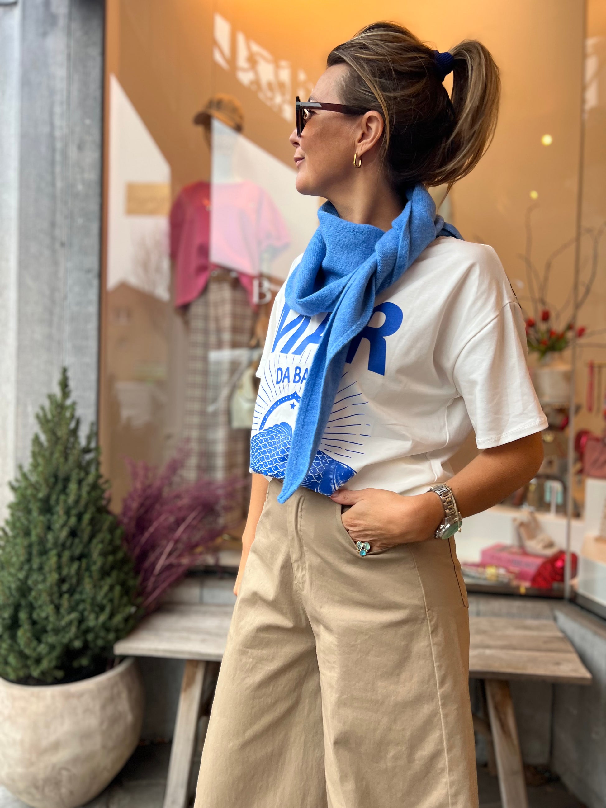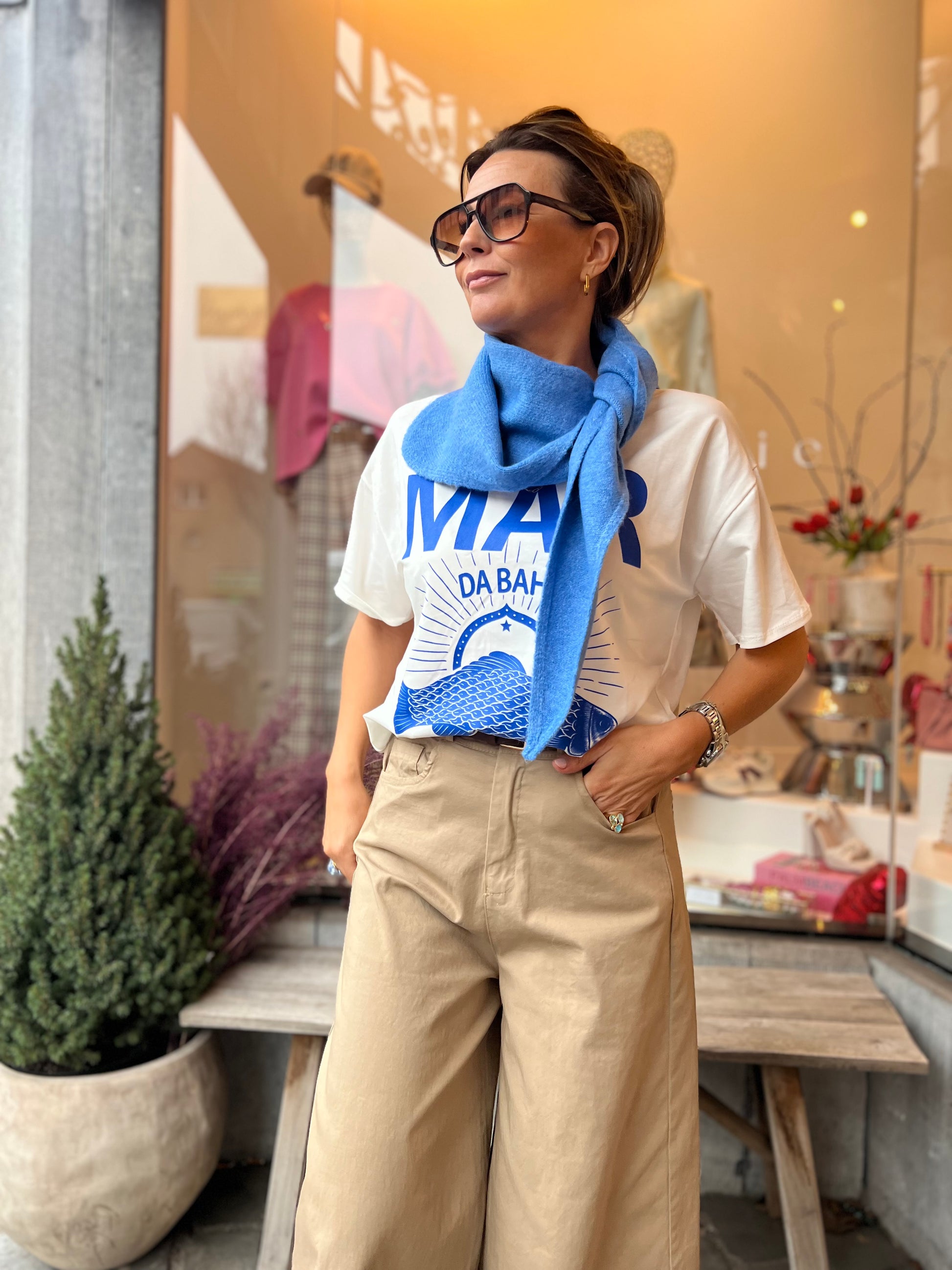 Friswitte t-shirt met blauwe print
