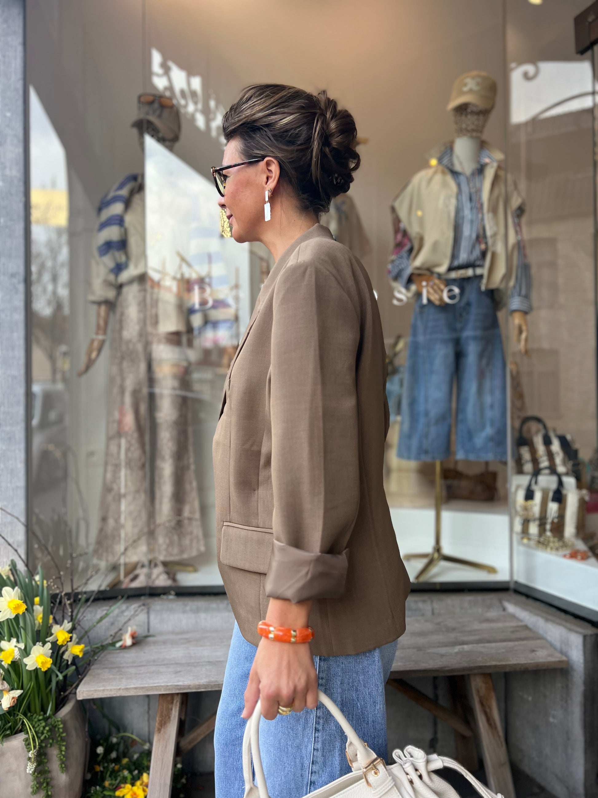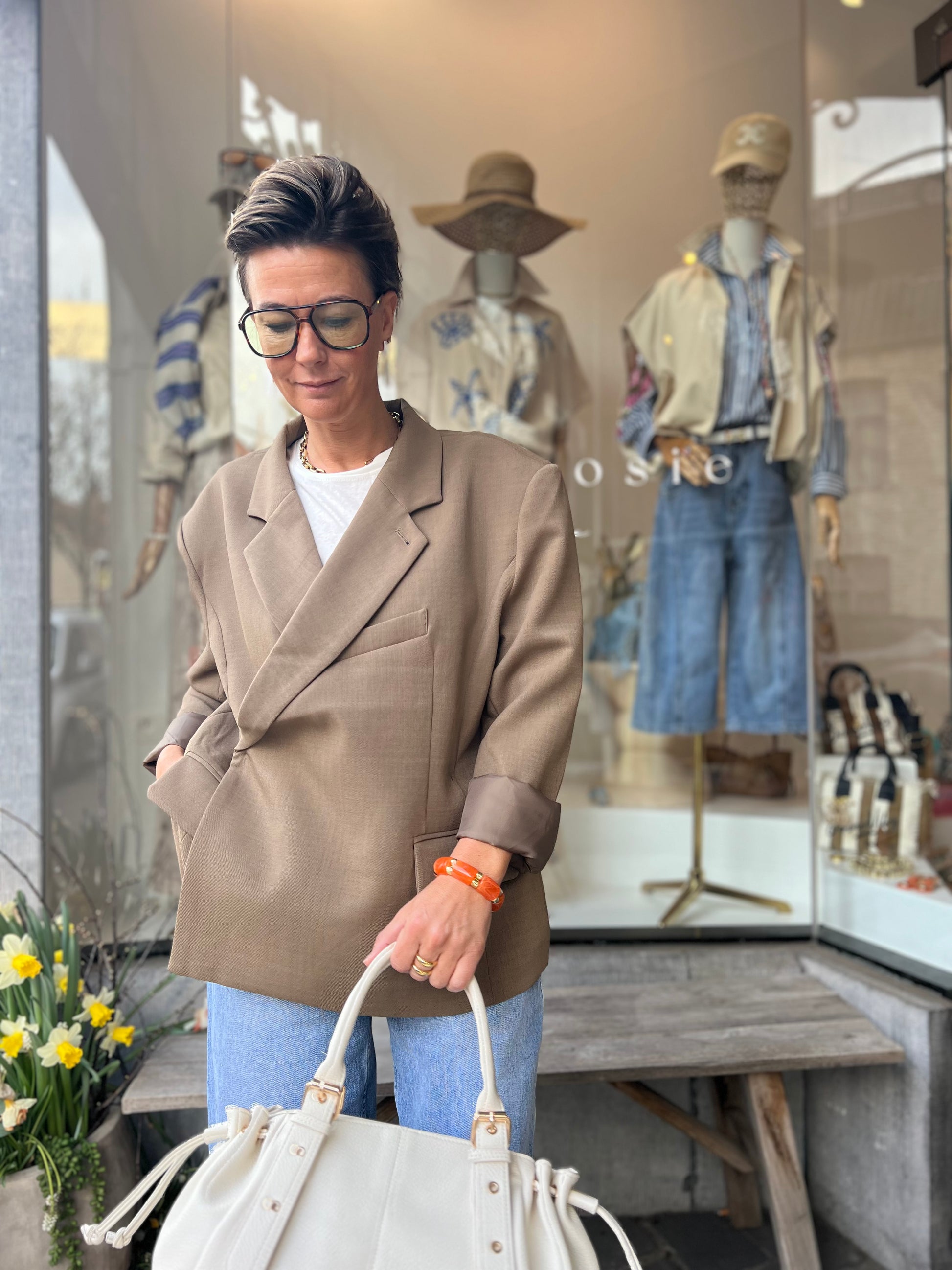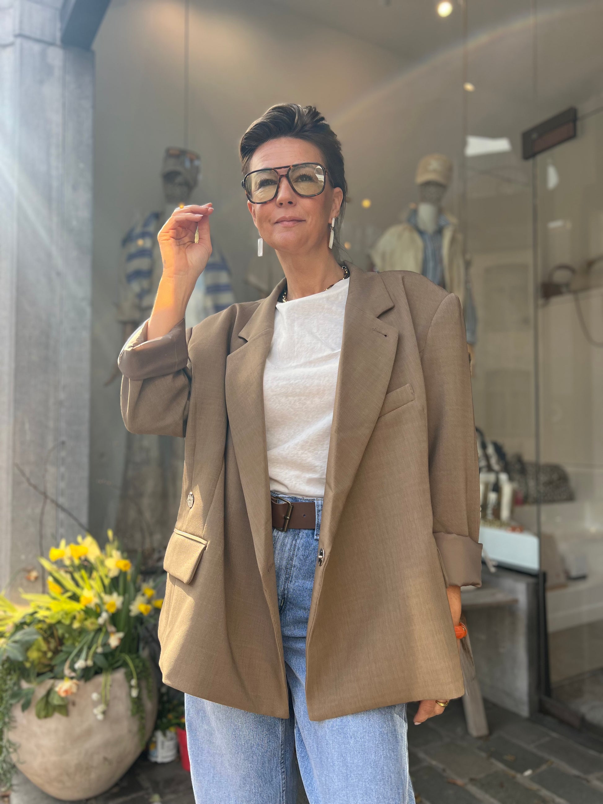 Stijlvolle damesblazer in een taupe kleur