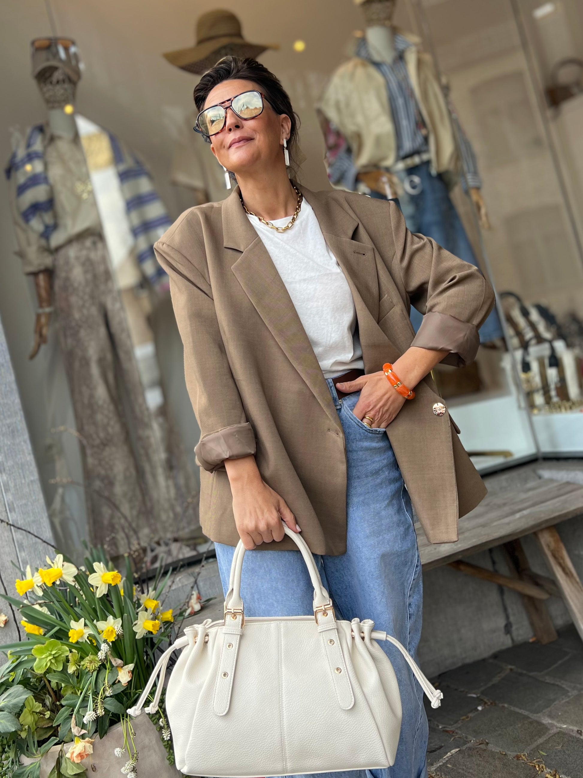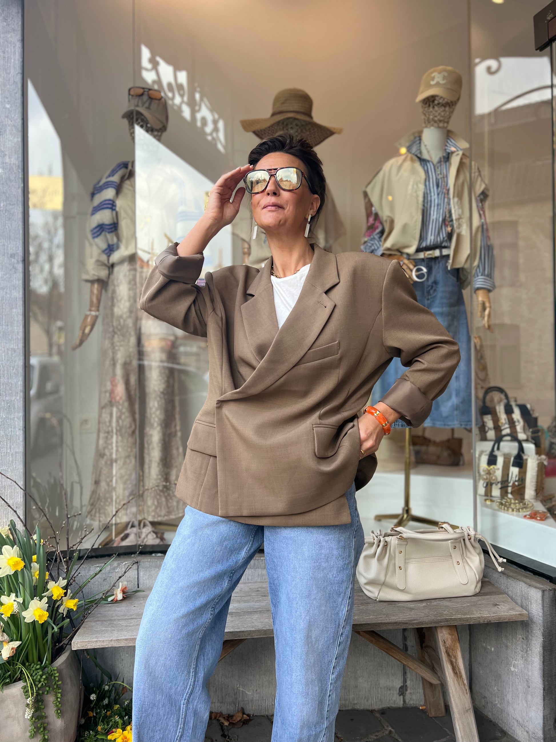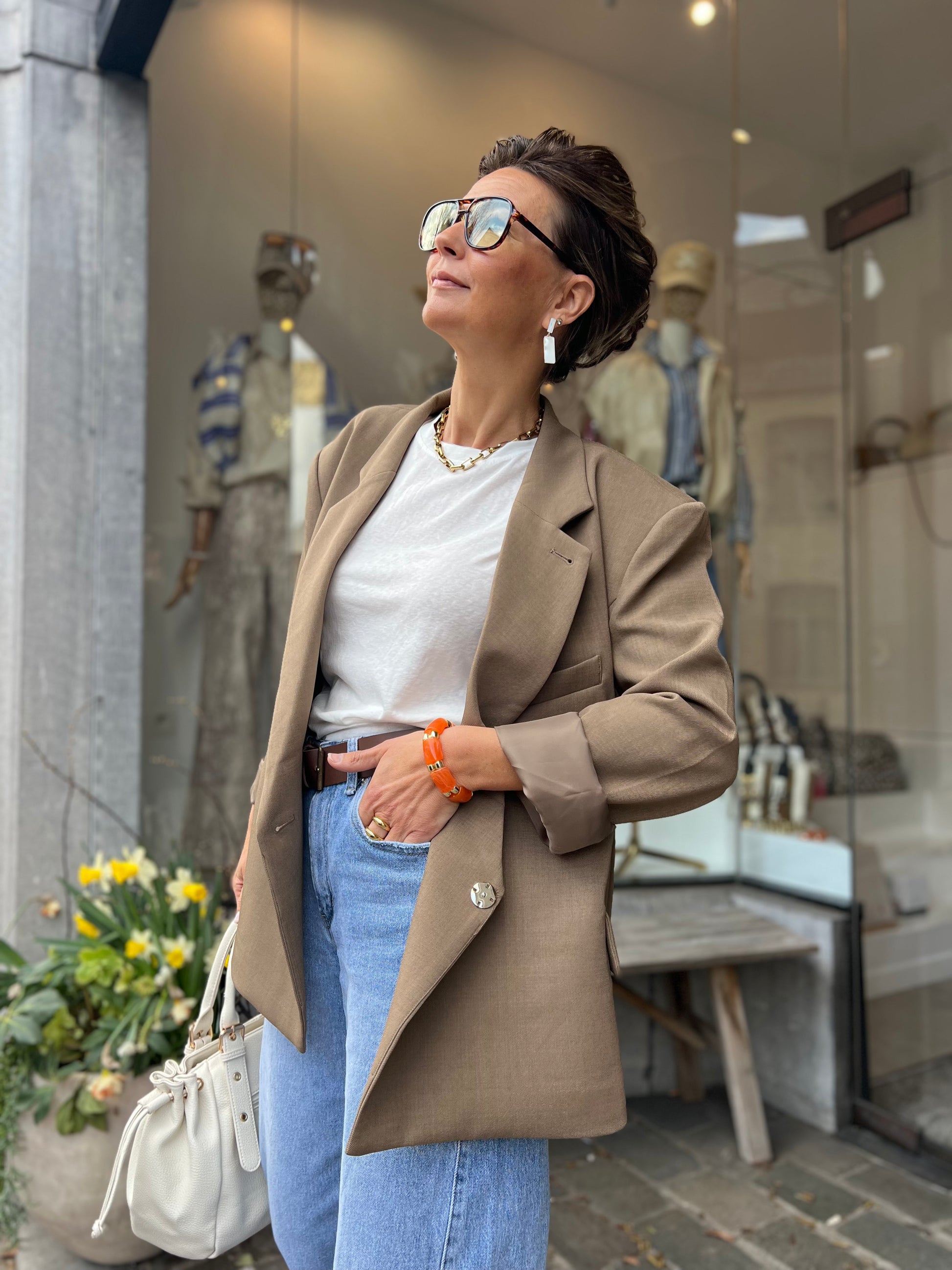 Stijlvolle damesblazer in een taupe kleur