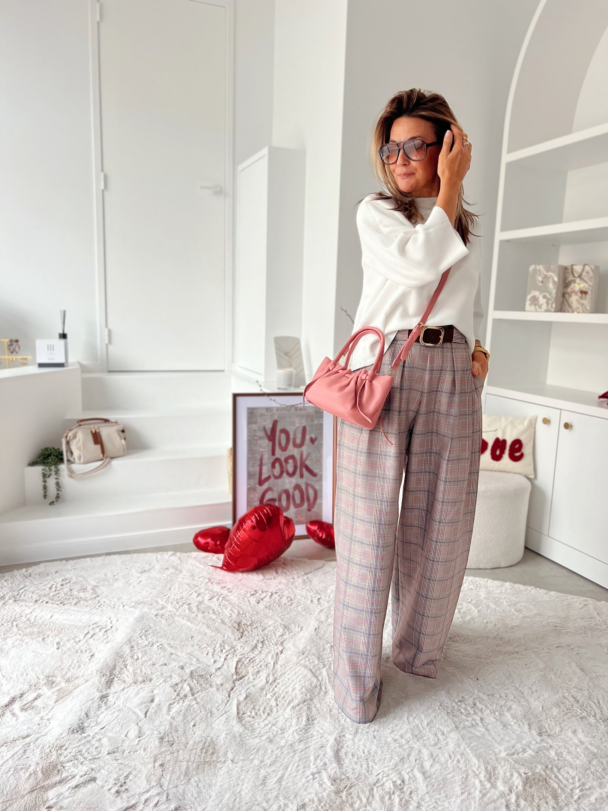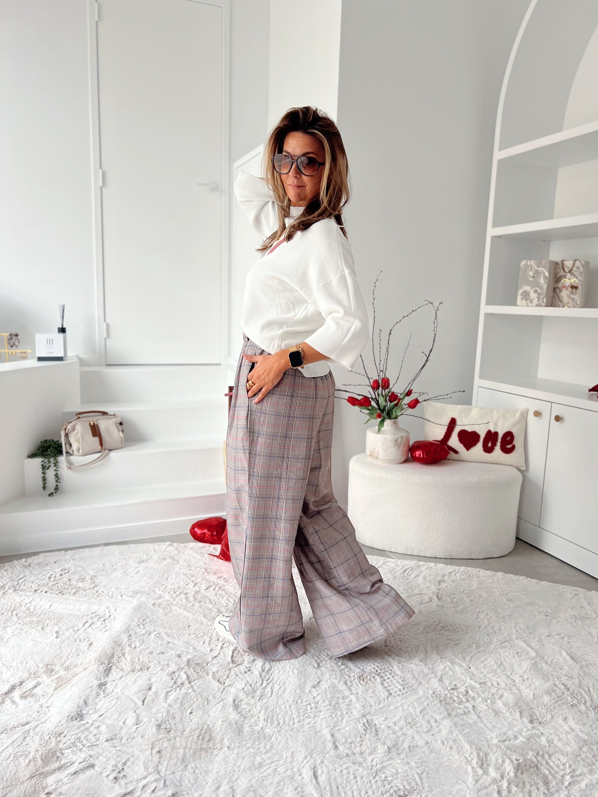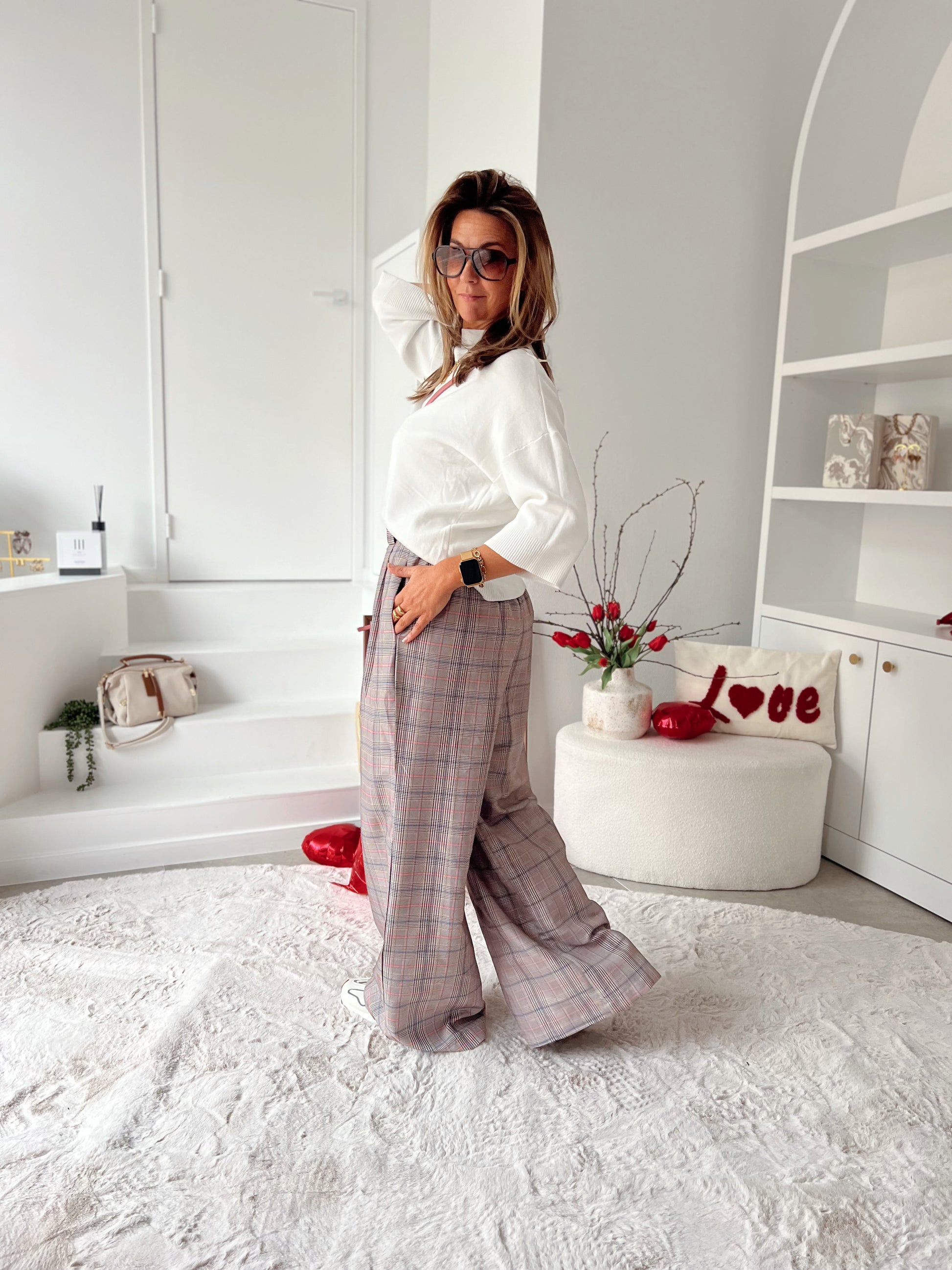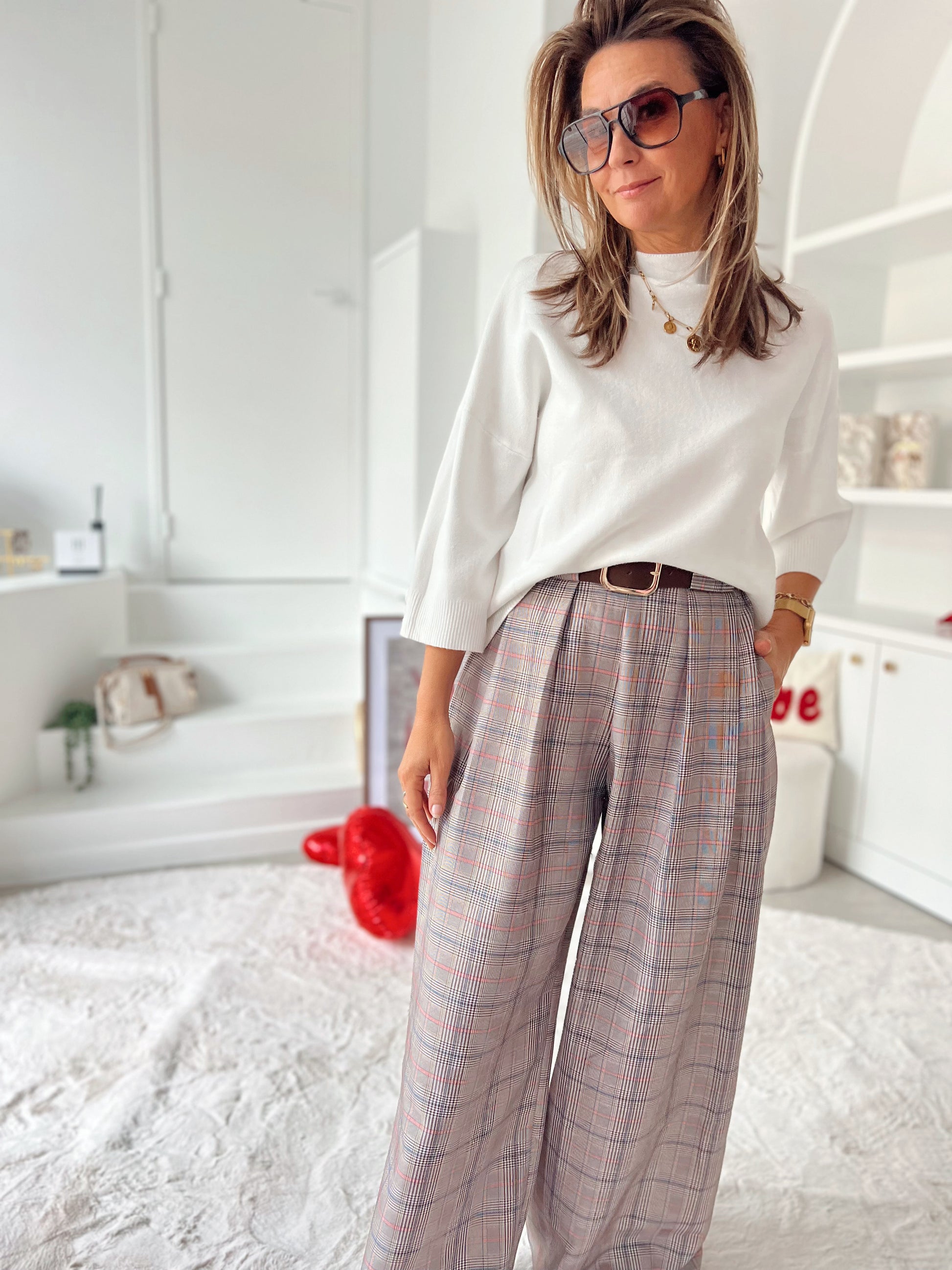 Ruitjesbroek met ingewerkte riem, deze is wel afneembaar.