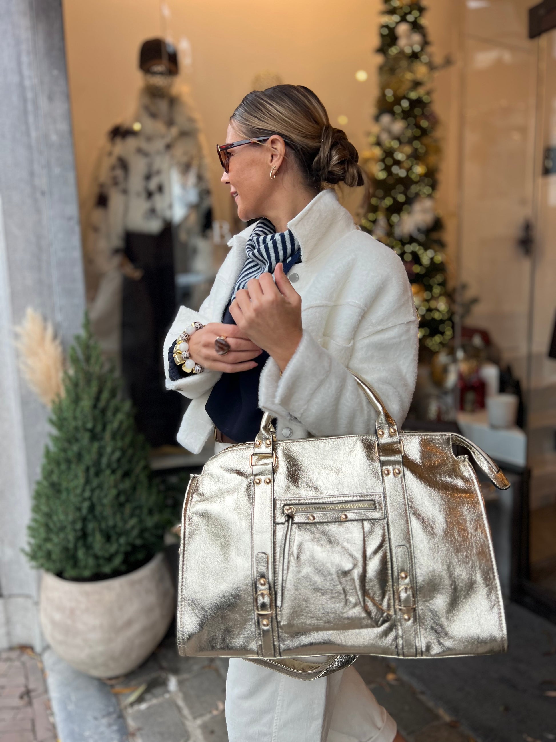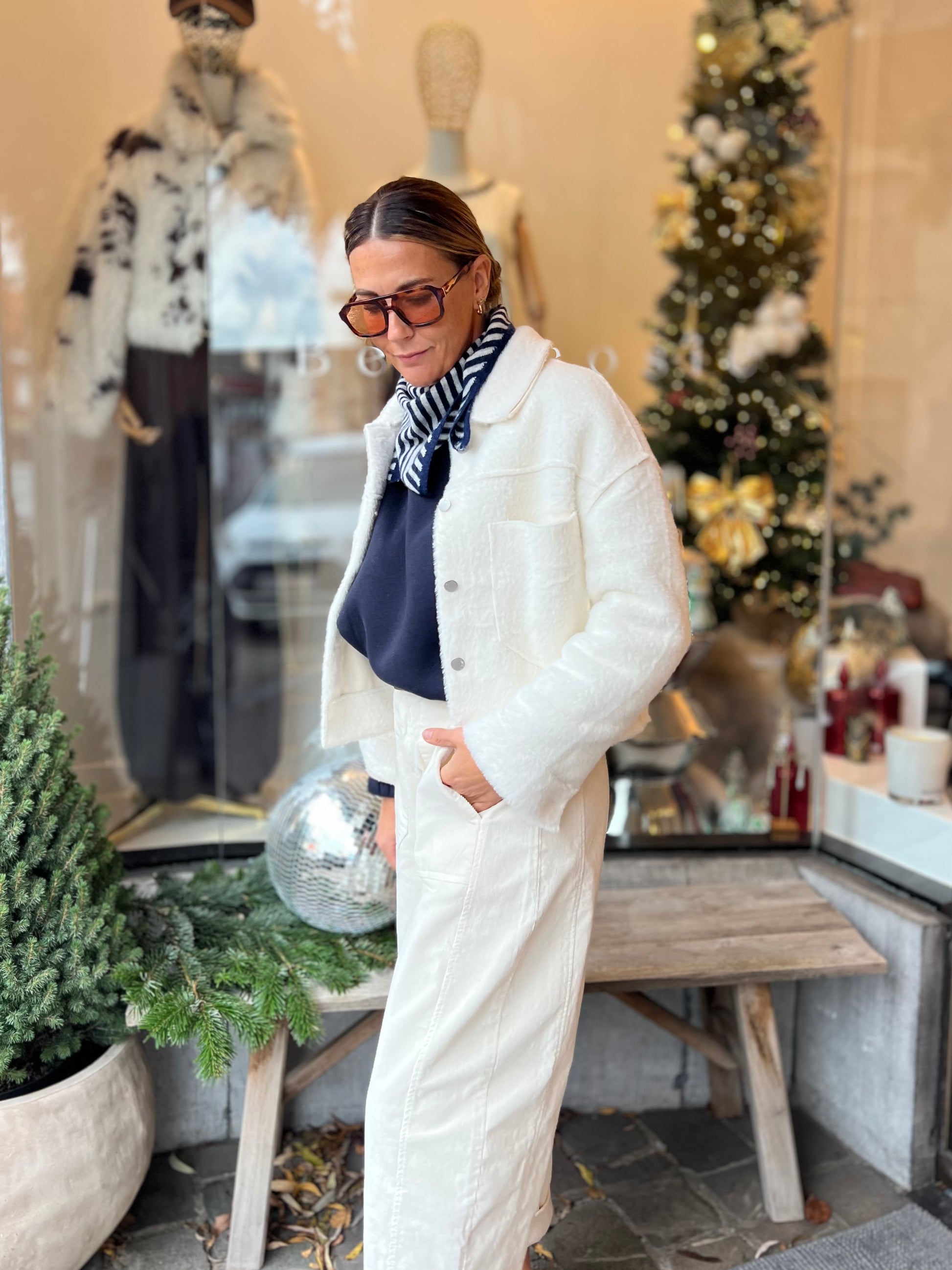Draag het jasje over een casual outfit voor een trendy look.