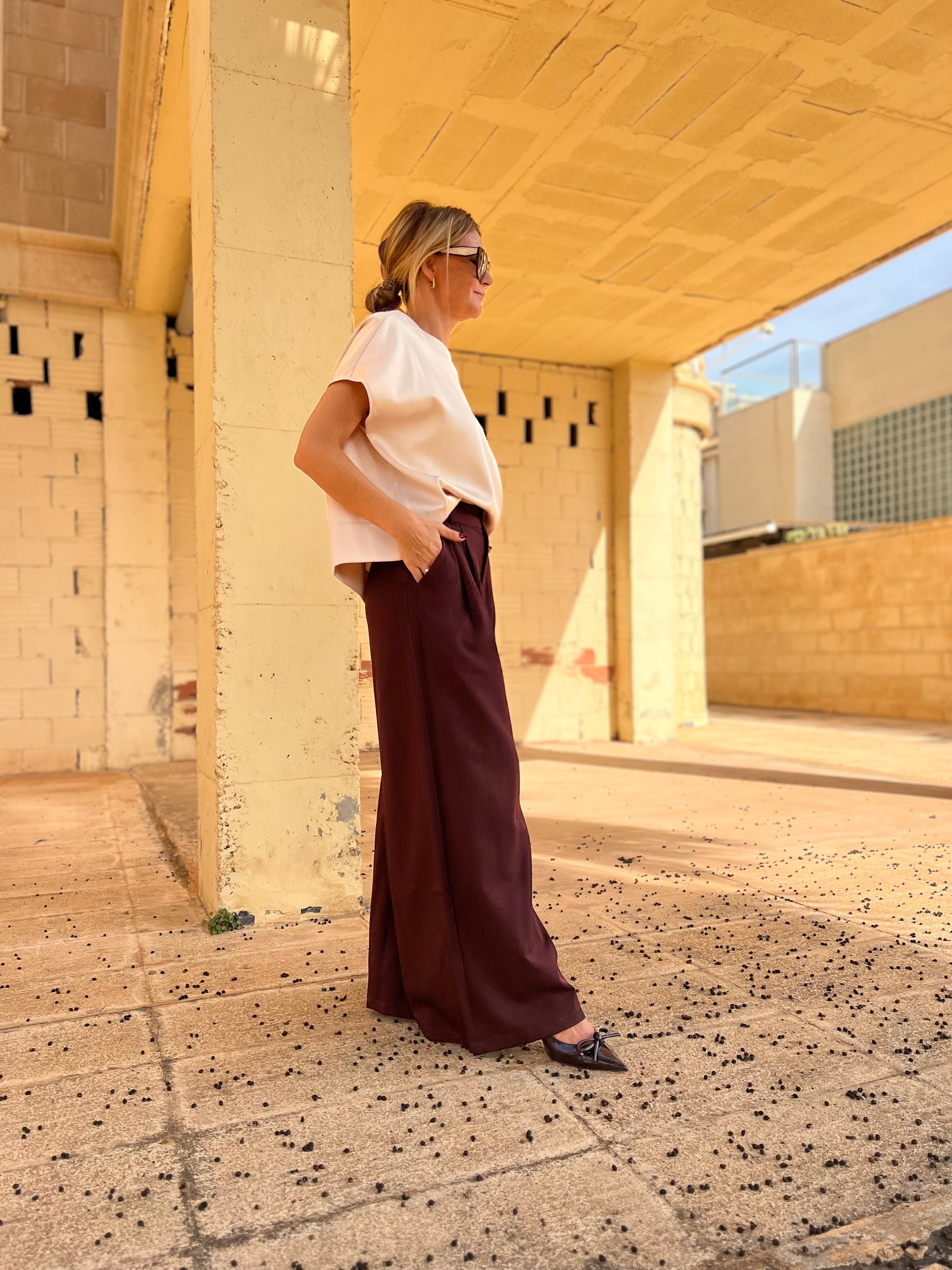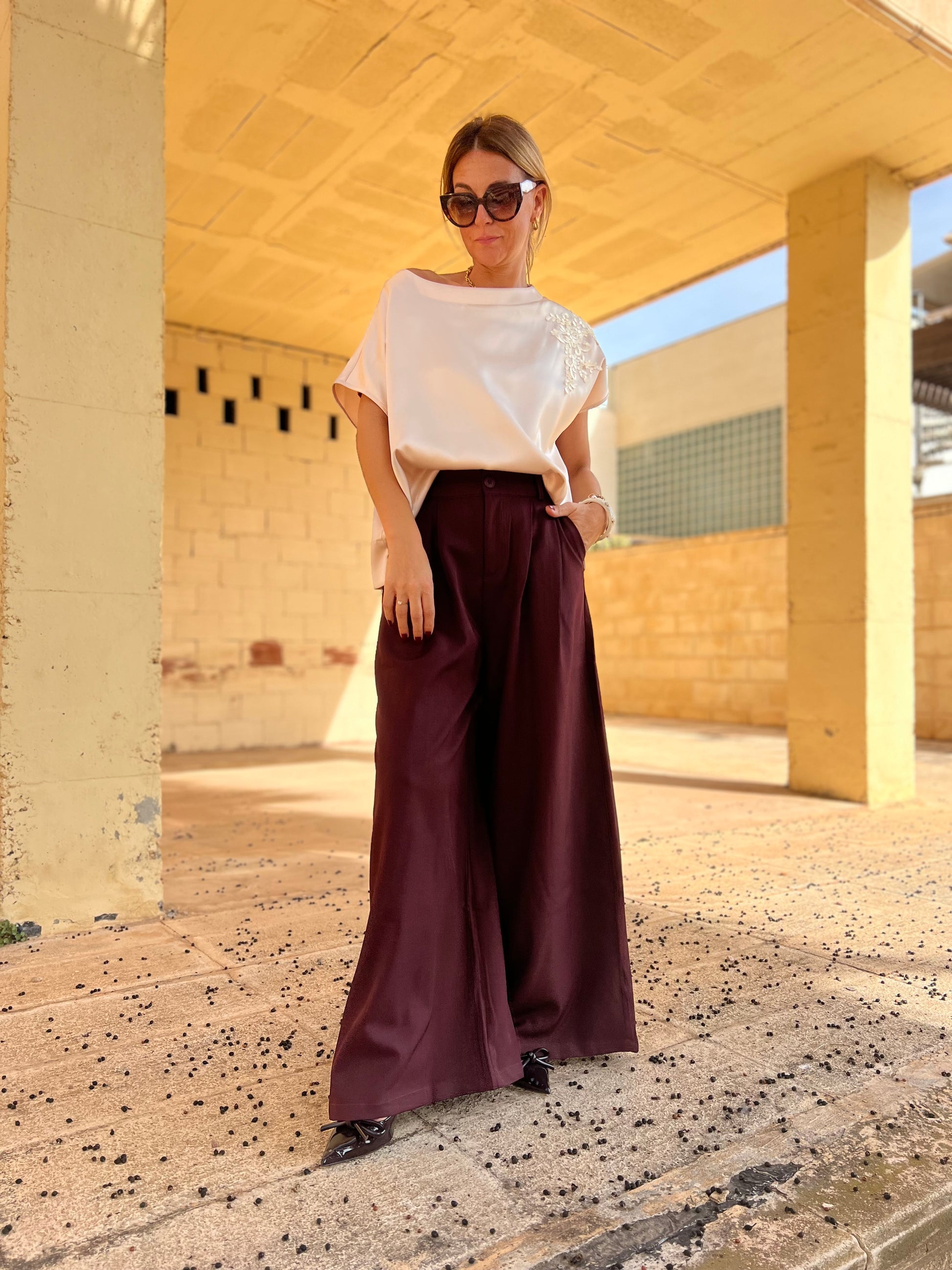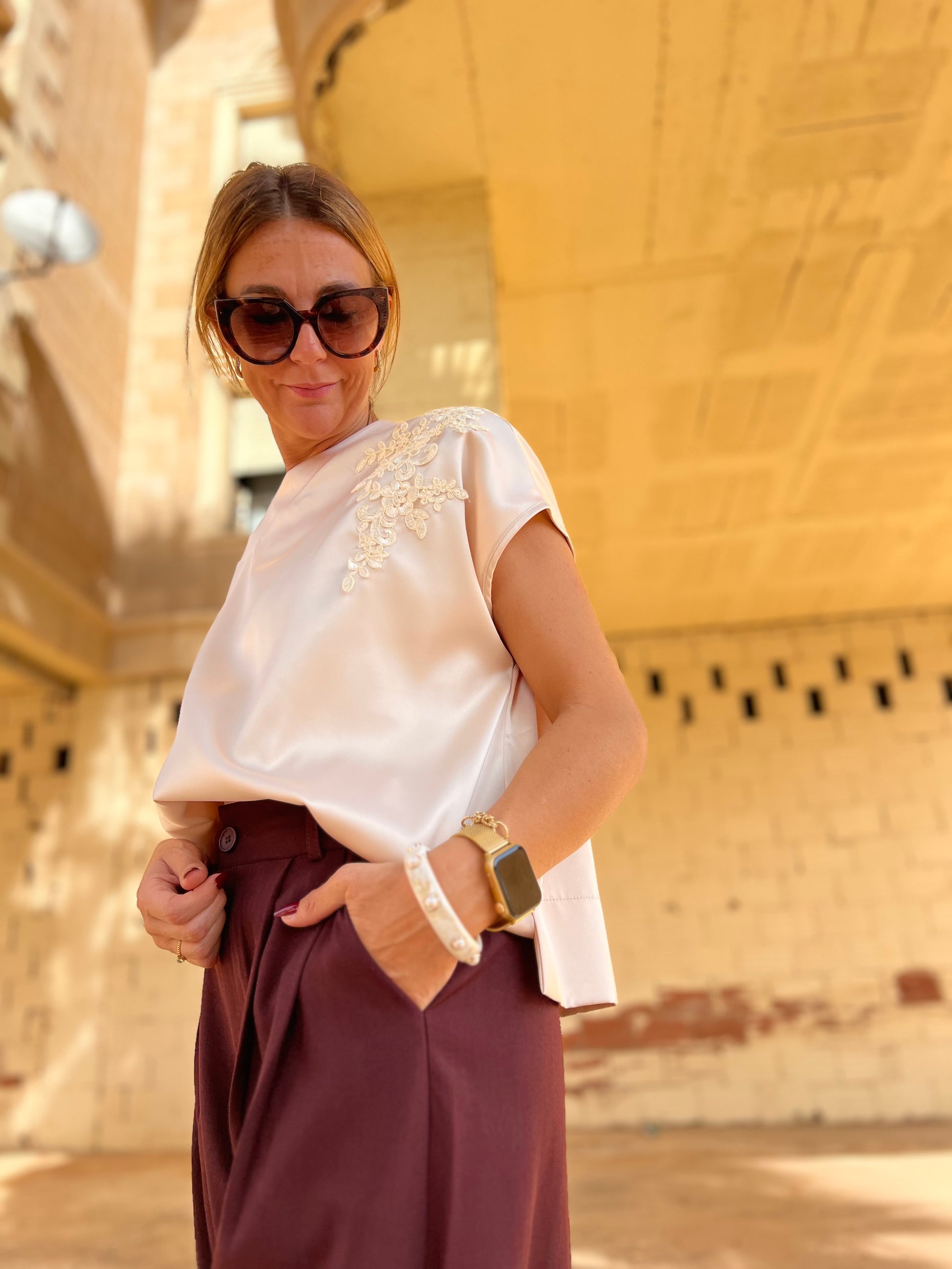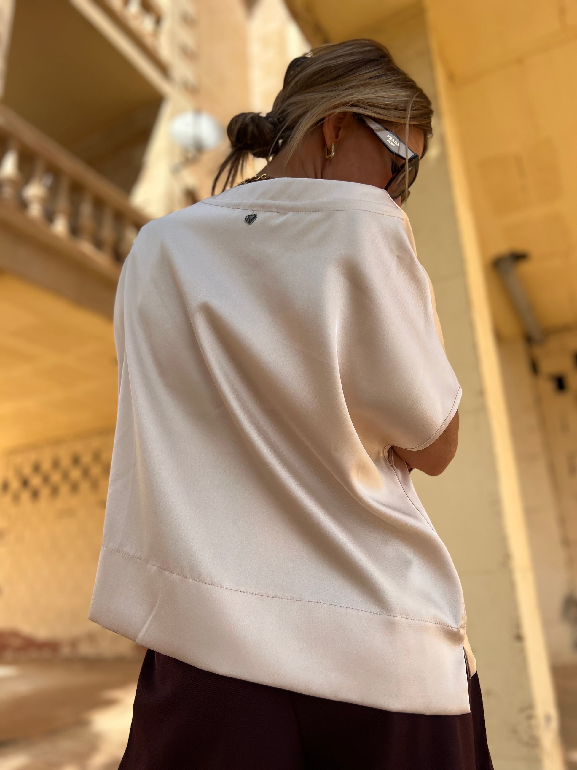 Ze heeft een comfortabele pasvorm, een korte mouw en een brede ronde hals. Achteraan afgewerkt met het gekende metalen hartjeslogo van A&A.